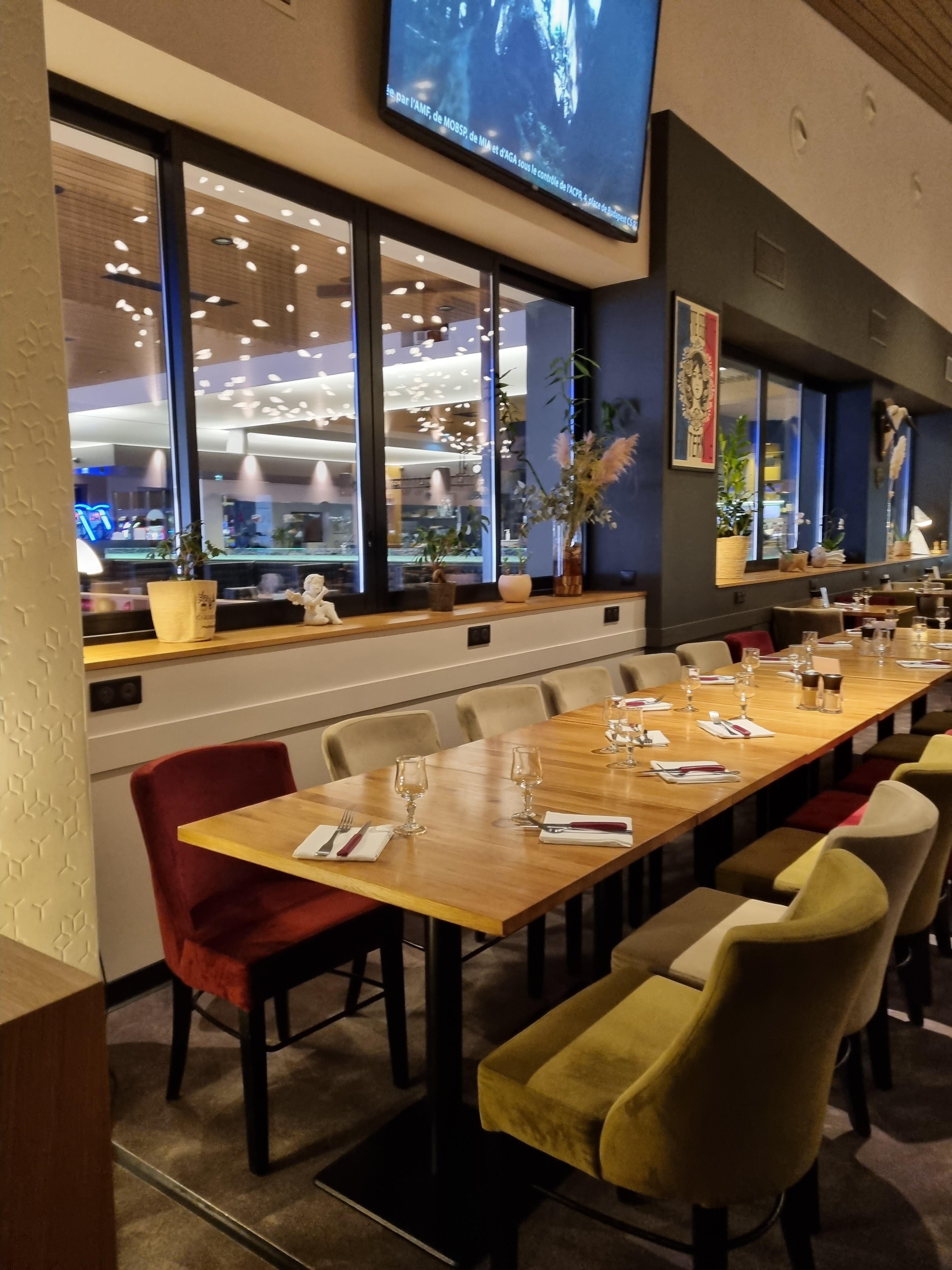 Endroit et décoration magnifique, cuisine super bonne ma fille a adoré son burger, nous avons eu un petit désagrément l'entrée est arrivée avant l'apéritif ensuite le plat arrive alors que l'on a pas terminé l'entrée. J'ai demandé au serveur si le gâteau arrivait avant que l'on est terminé notre plat, il m'a répondu non et qu'il s'excusait, normalement on réclame la suite d'une table quand les entrées sont débarrassés. Au moment du réglement j'ai expliqué mon désagrément à la responsable elle nous a offert 1 partie de bowling pour 4 personnes. Mon fils m'a offert le restaurant pour mon anniversaire mais au niveau du millefeuille j'ai le prix un peu en travers de la gorge on nous facture le menu à 35 euros sans le dessert puisque c'était le gâteau de prévu. 42€ le millefeuille pour 6 personnes c'est un peu cher 7 euros la part. Sinon nous avons passé une bonne soirée dans l'ensemble.