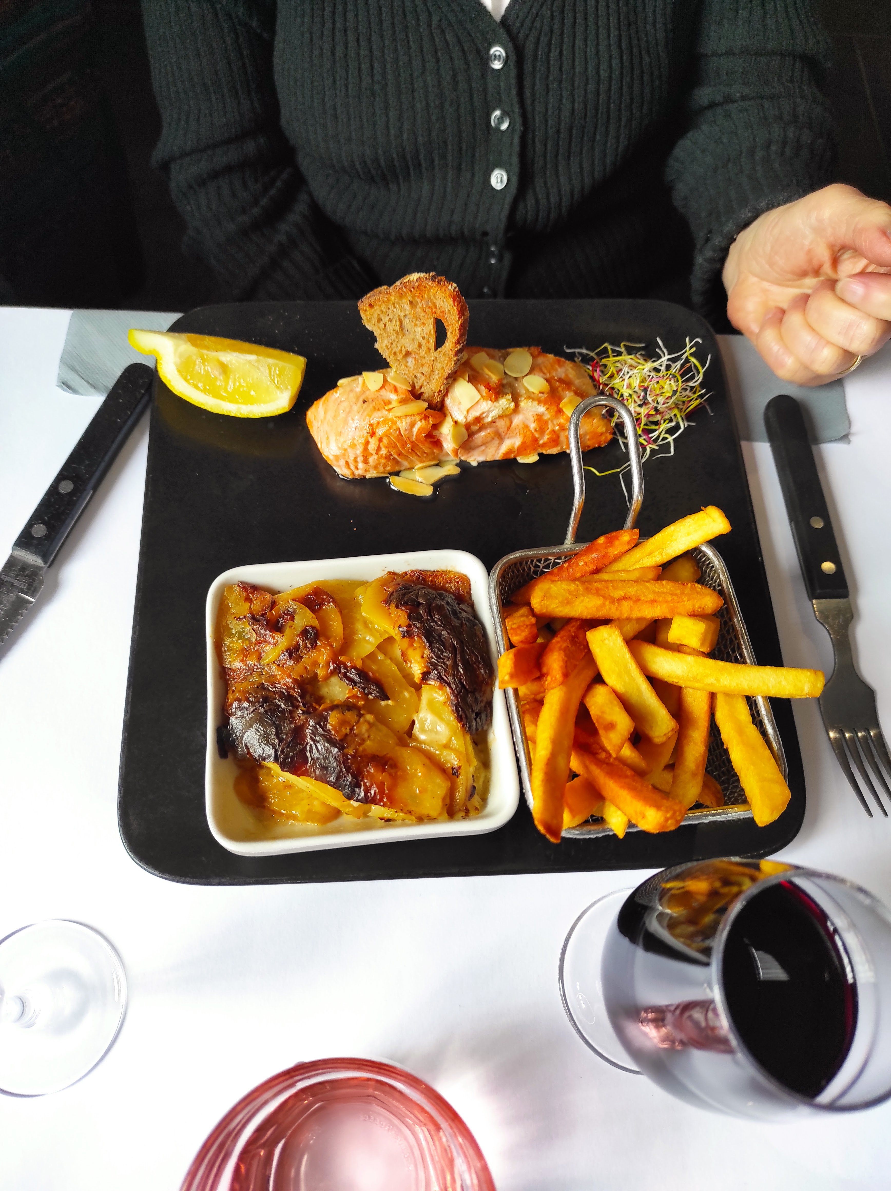Cuisine pas terrible. Poisson pas cuit, escalope milanaise on avait l'impression que c'était une escalope reconstituée, le Burger c'était du poulet reconstitué. Un peu déçue. J'y étais déjà allée et j'aimais bien.