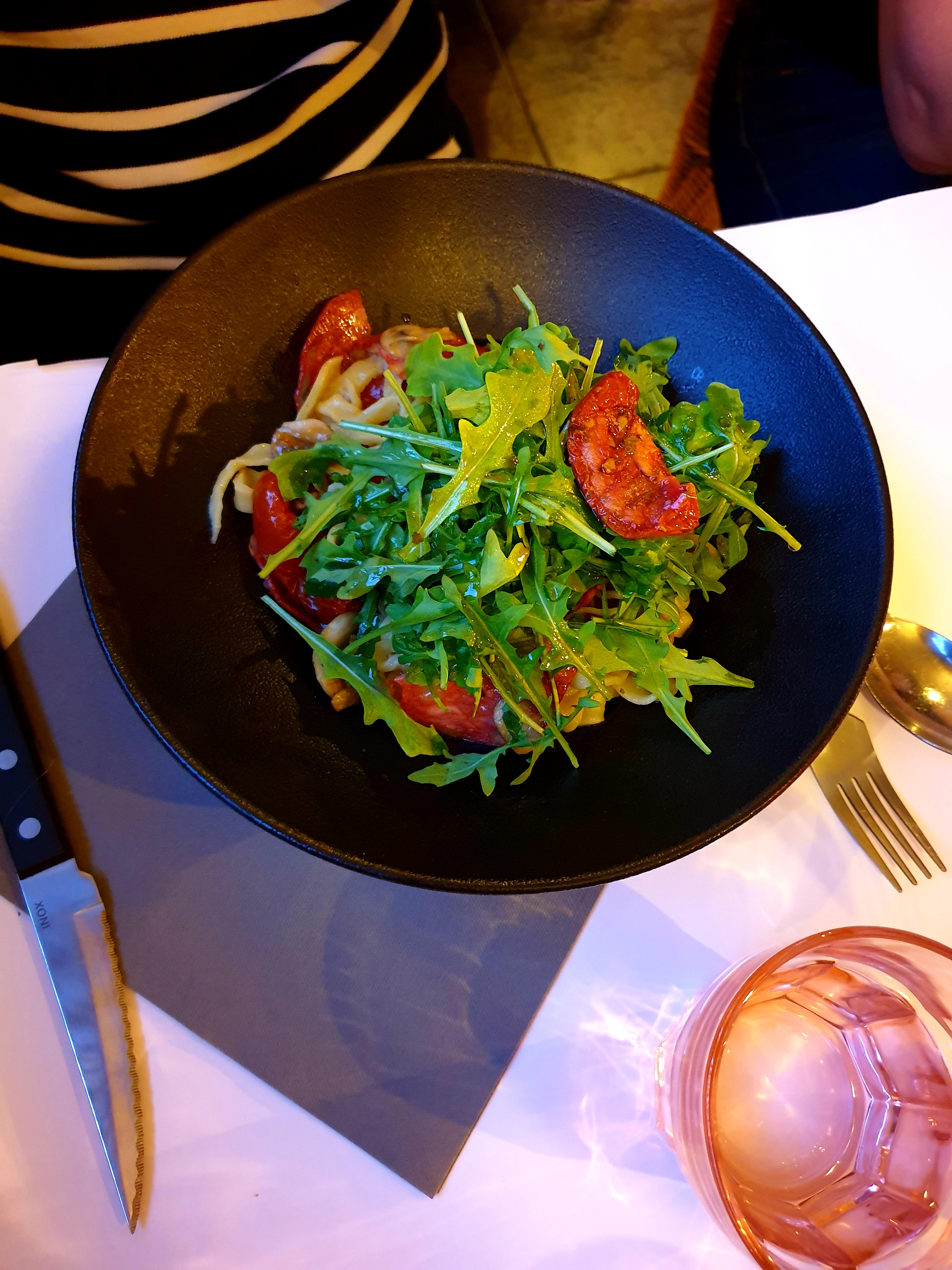 Serveur sympa , il as prit 10 min. Pour nous expliquer pourquoi les mauvais commentaire. ... Salade bonne et pâtes excellente. .. si il en reste ils nous donne une boîte pour finir à la maison