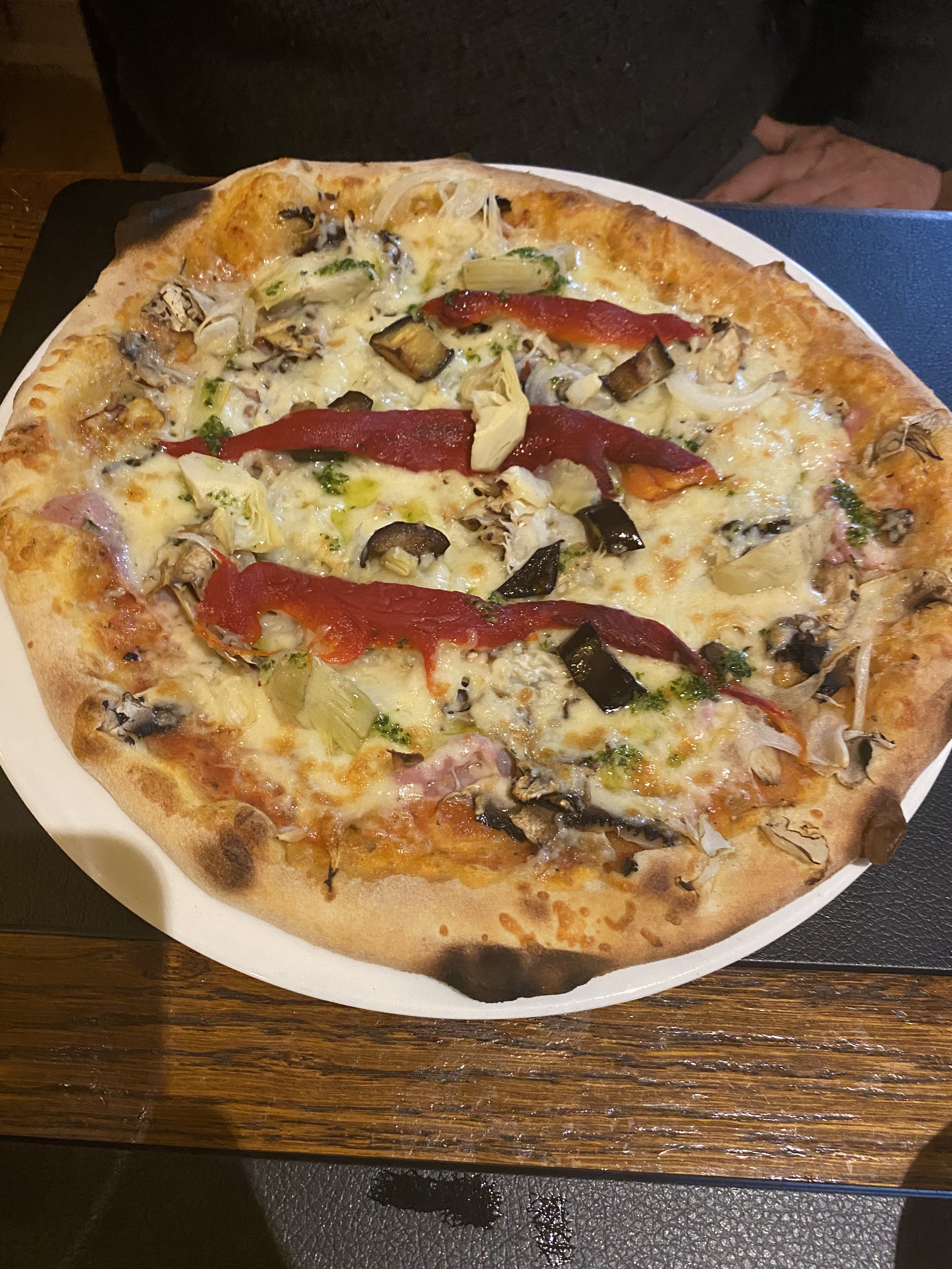 Ambiance décontractée mais recherchée, conviviale mais discrete, adaptée autant aux couples que aux familles et aux groups d'amis. Bon service, belle carte. Nous avons dégusté une pizza EXCELLENTE!!! Je reccomande vivement.