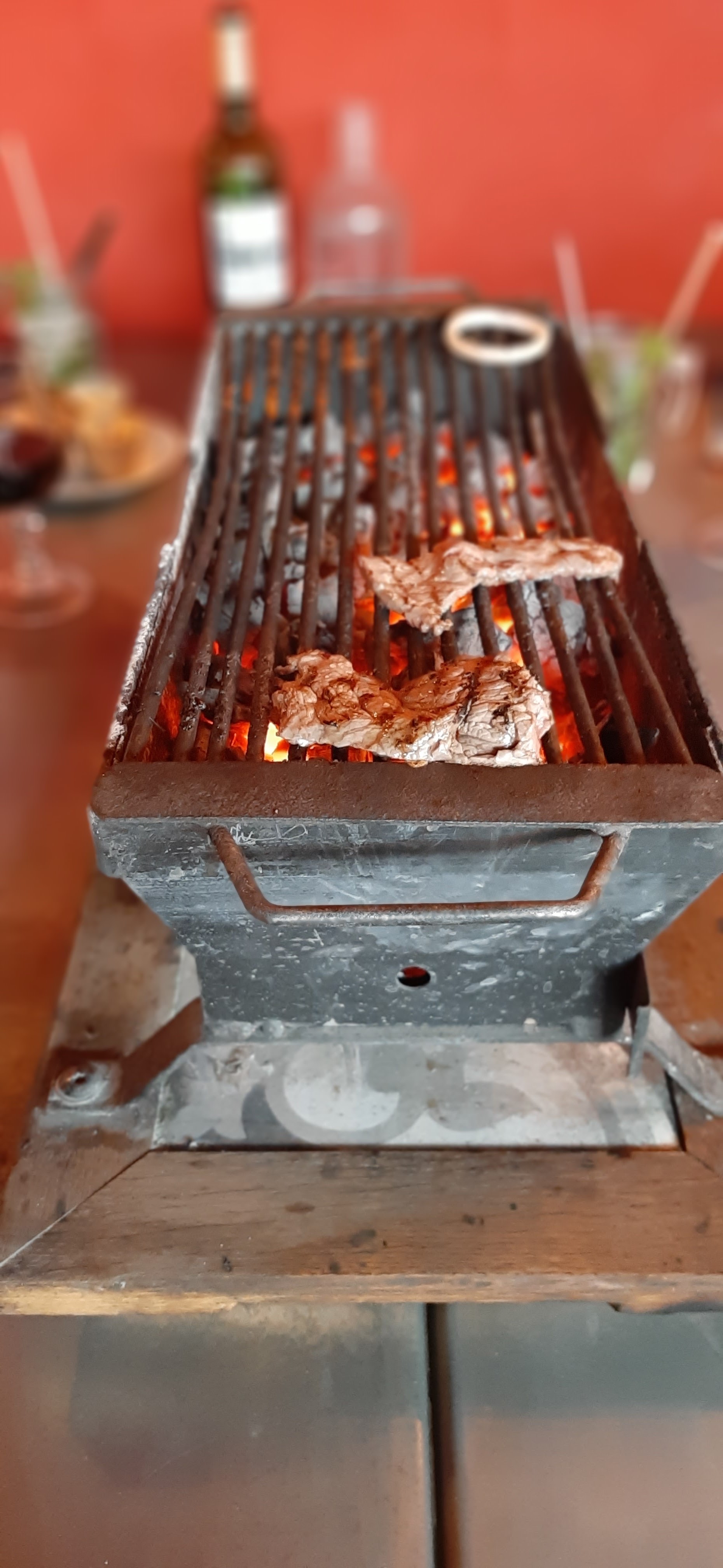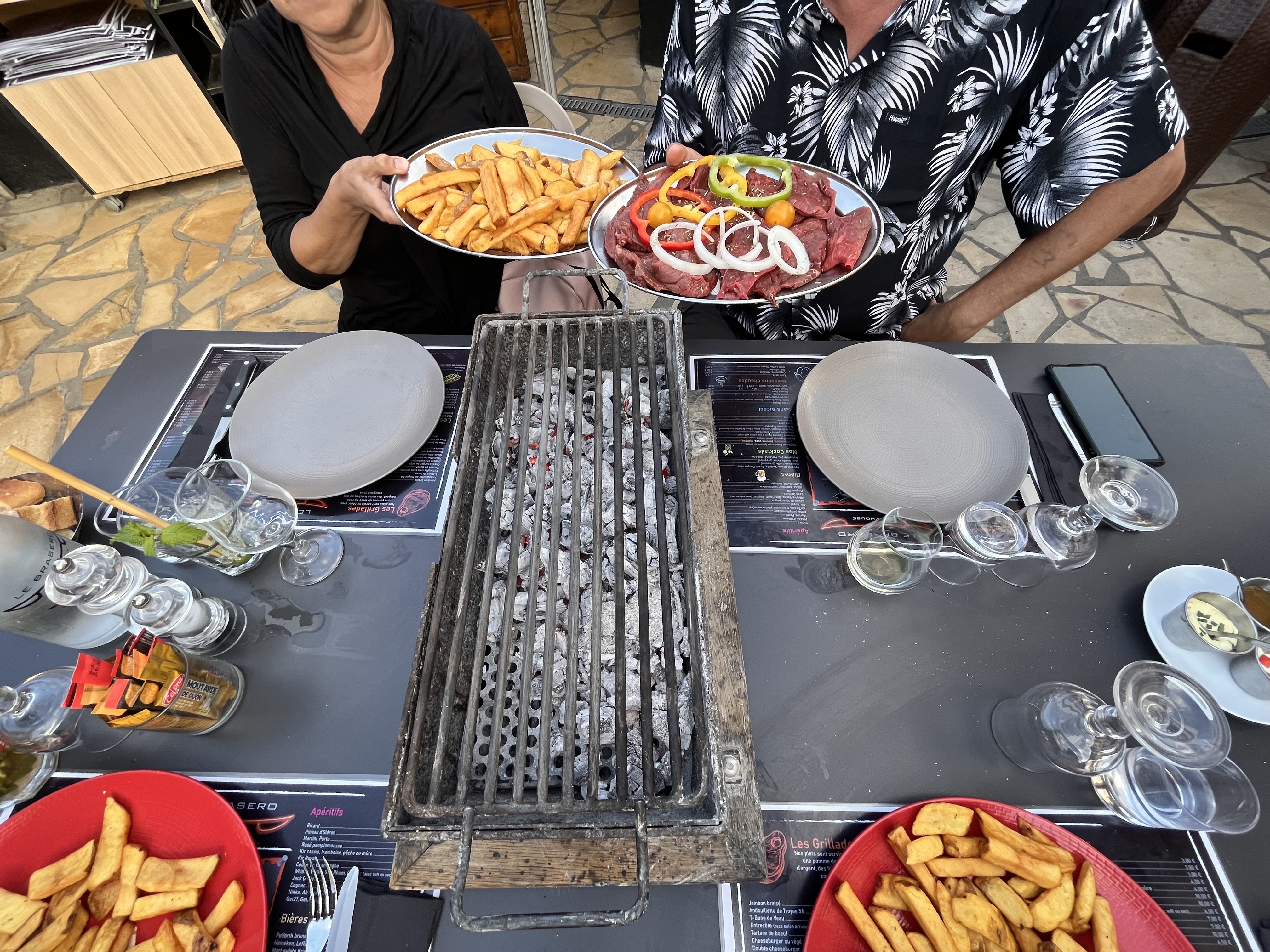 Faire griller sa viande nous même sur des braises de serments de vigne riche idée les quantités sont largement suffisante.