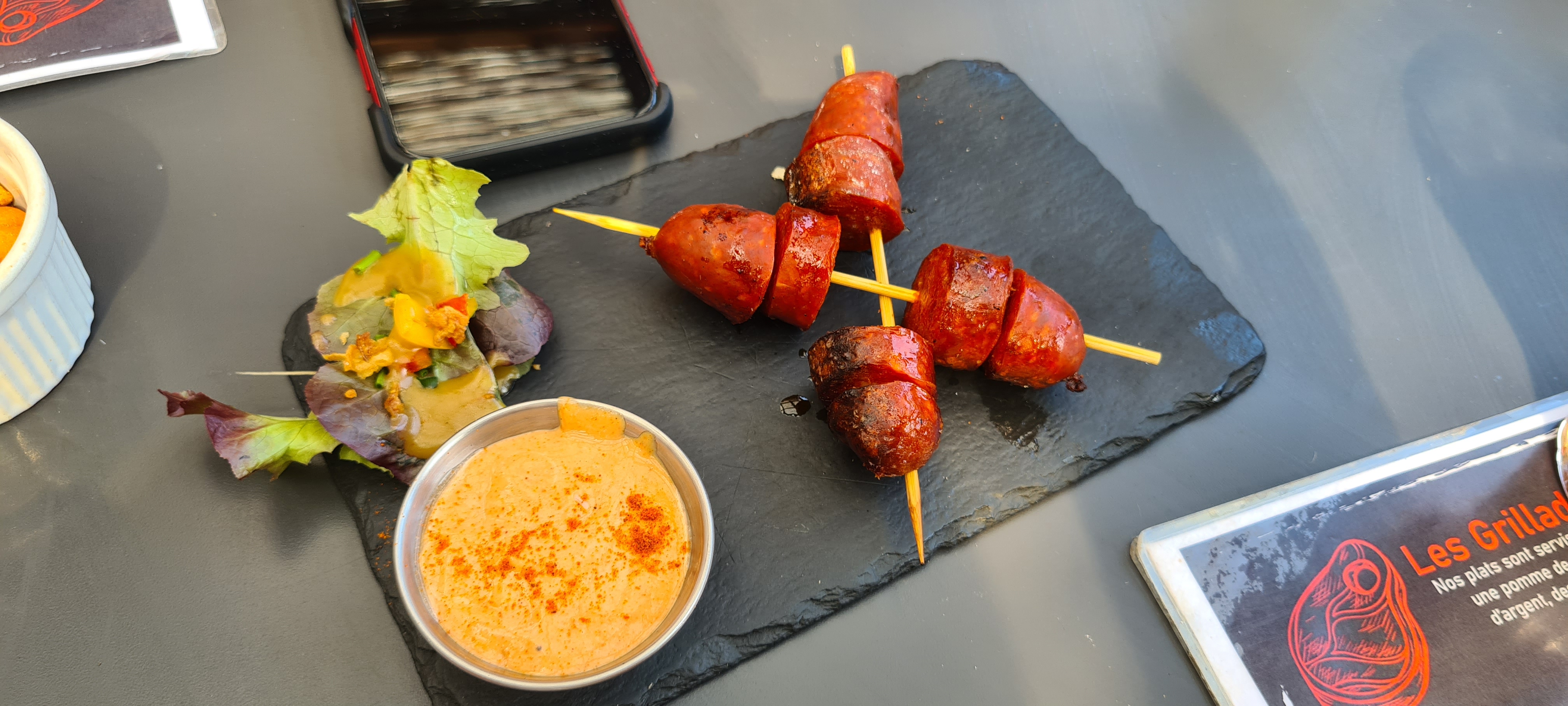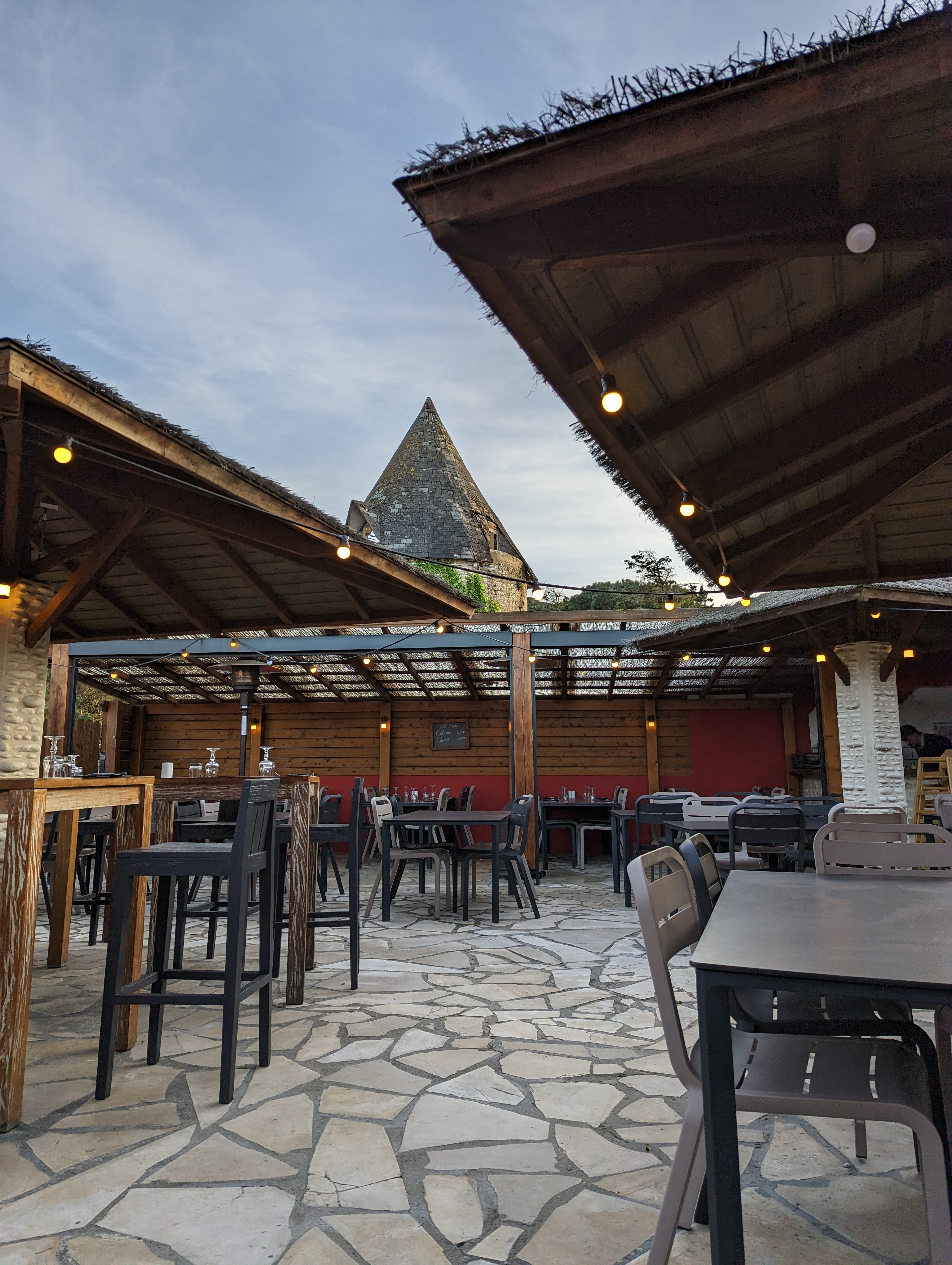 Dans l'ensemble superbe endroit très agréable malgré la chaleur...ce pendant nous sommes venu le dimanche 10 septembre au midi, l'accueil de la seule serveuse pour tous le restaurant était agréable. Nous avons été déçu sur la cuisine, tapas 5€50 pour deux chorizo c'est extra chère..., l'andouillettes était bonne, le jambon était OK..., 1Ribs =1/3 du ribs, les frites fraîches était frite congeler tout simplement... Clairement déçu de la cuisine.