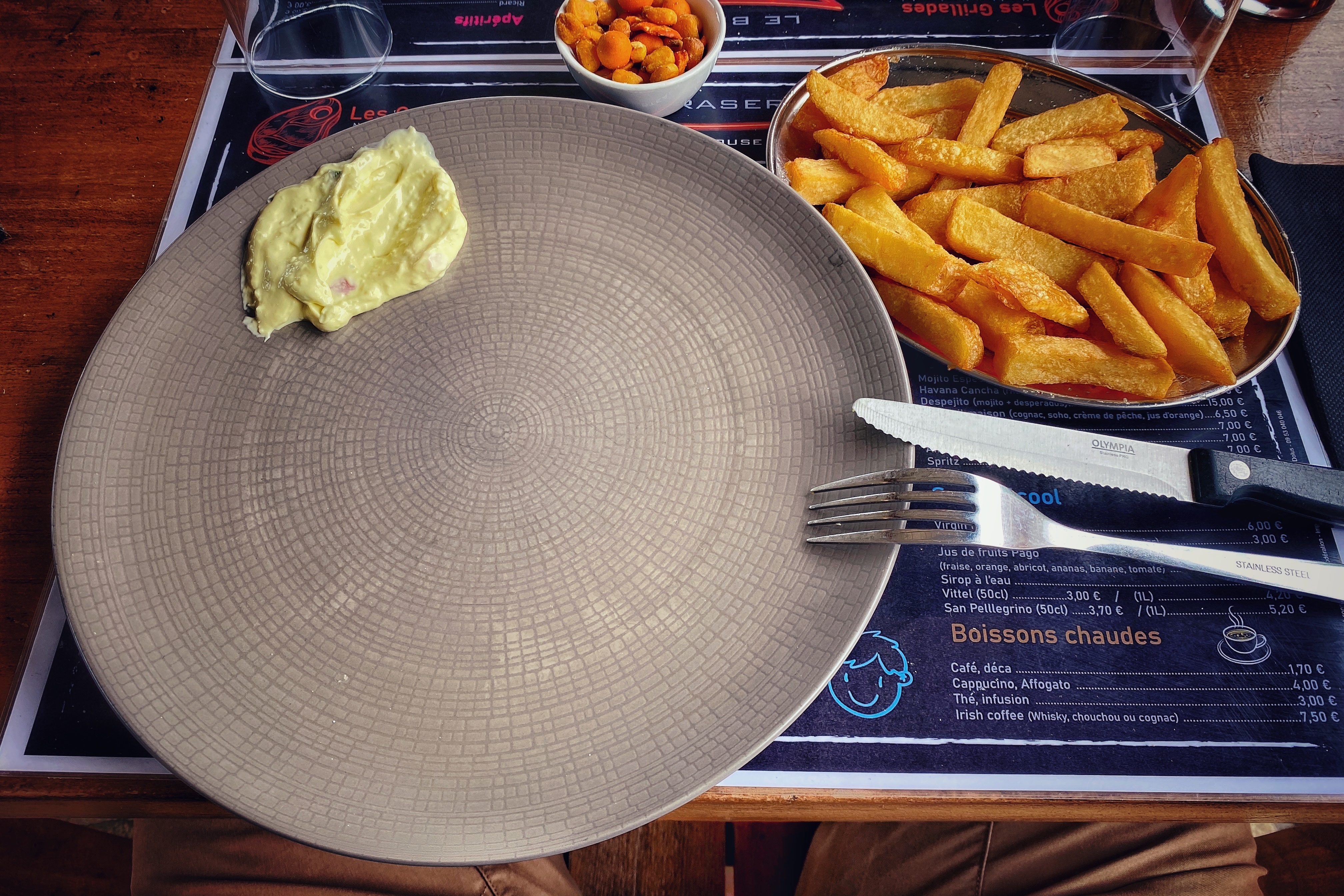Très dessus du service, si vous avez un train pas de soucis vu qu’il y a plusieurs services, service avec un lance pierre. Pas le temps de profiter une pause resto. Si on voulait prendre un deuxième apéro pas possible car on vous presse. Serveurs serveuses un peu de sourire c’est gratuit. Frite maison trop cuite et des minis frites, pomme de terre sans crème fraîche ou beurre. Juste pomme de terre en papillote. Bref on ne reviendra pas dommage nous sommes d’Oléron.