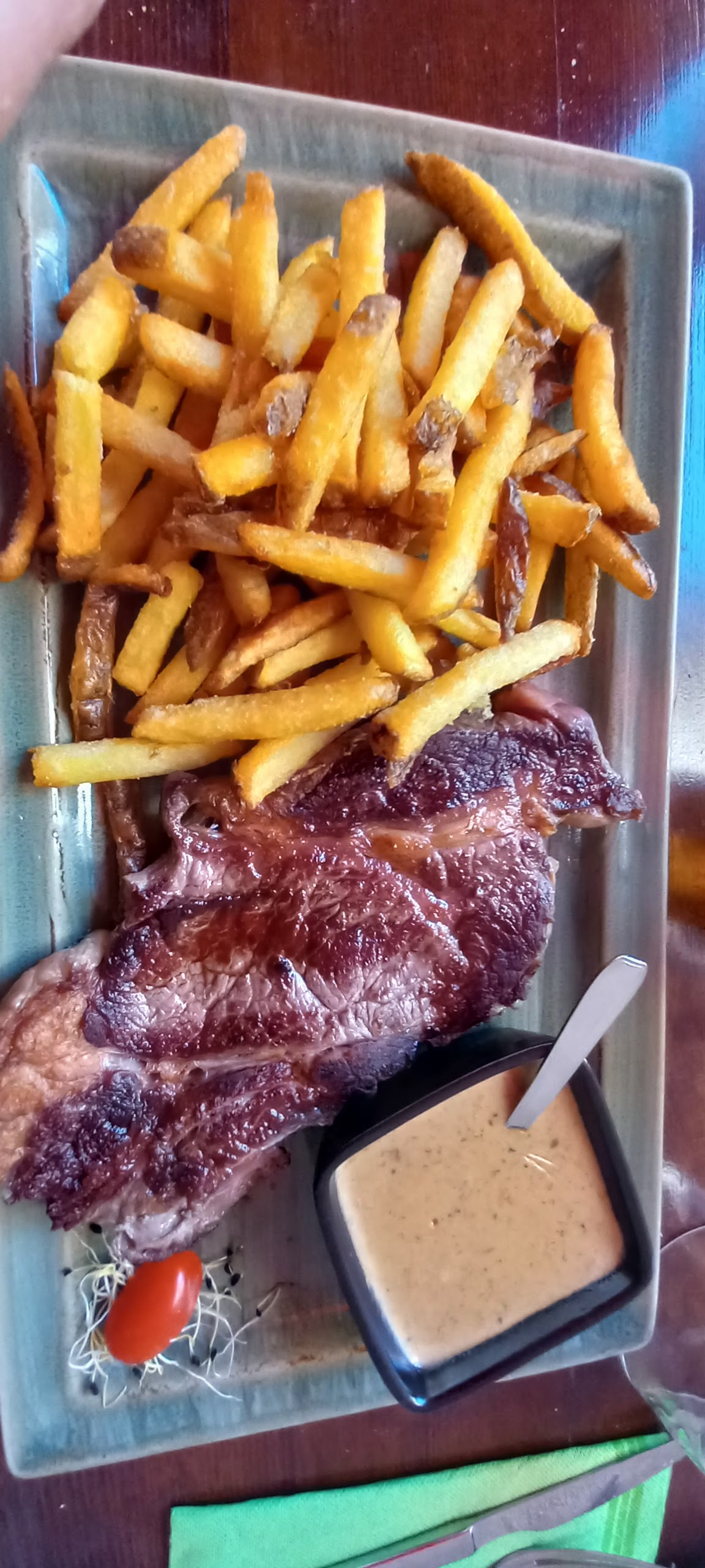 Moment exceptionnel on a rarement aussi bien manger, tout est bon, les frites, les sauces, la viande, le pain, les pommes de terres, l'accueil Honnêtement allez y les yeux fermés parole