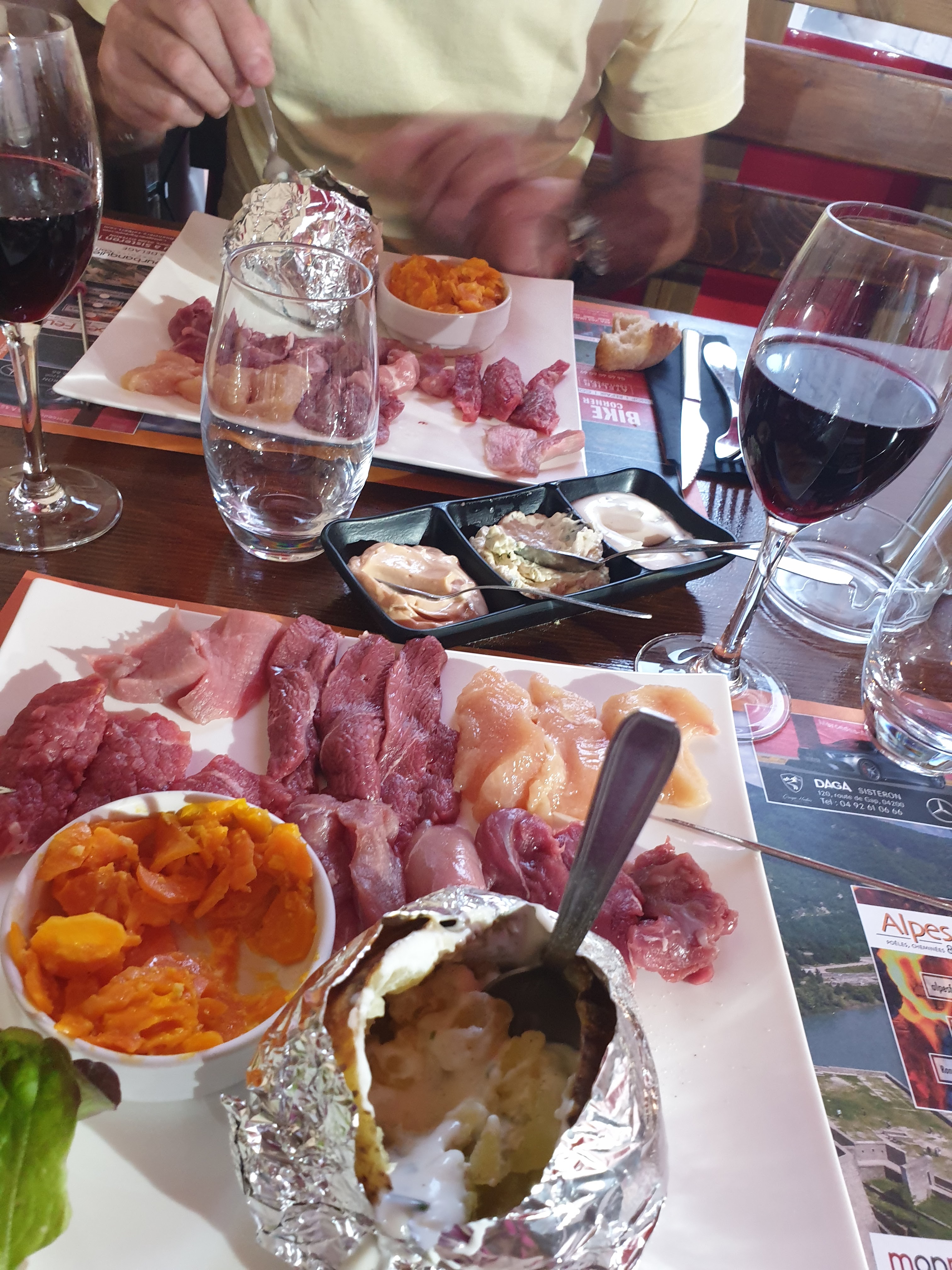 Goûtez la spécialité. La braserade mélange de viandes à faire cuire si même sur le brasero au centre de la table. Délicieux.