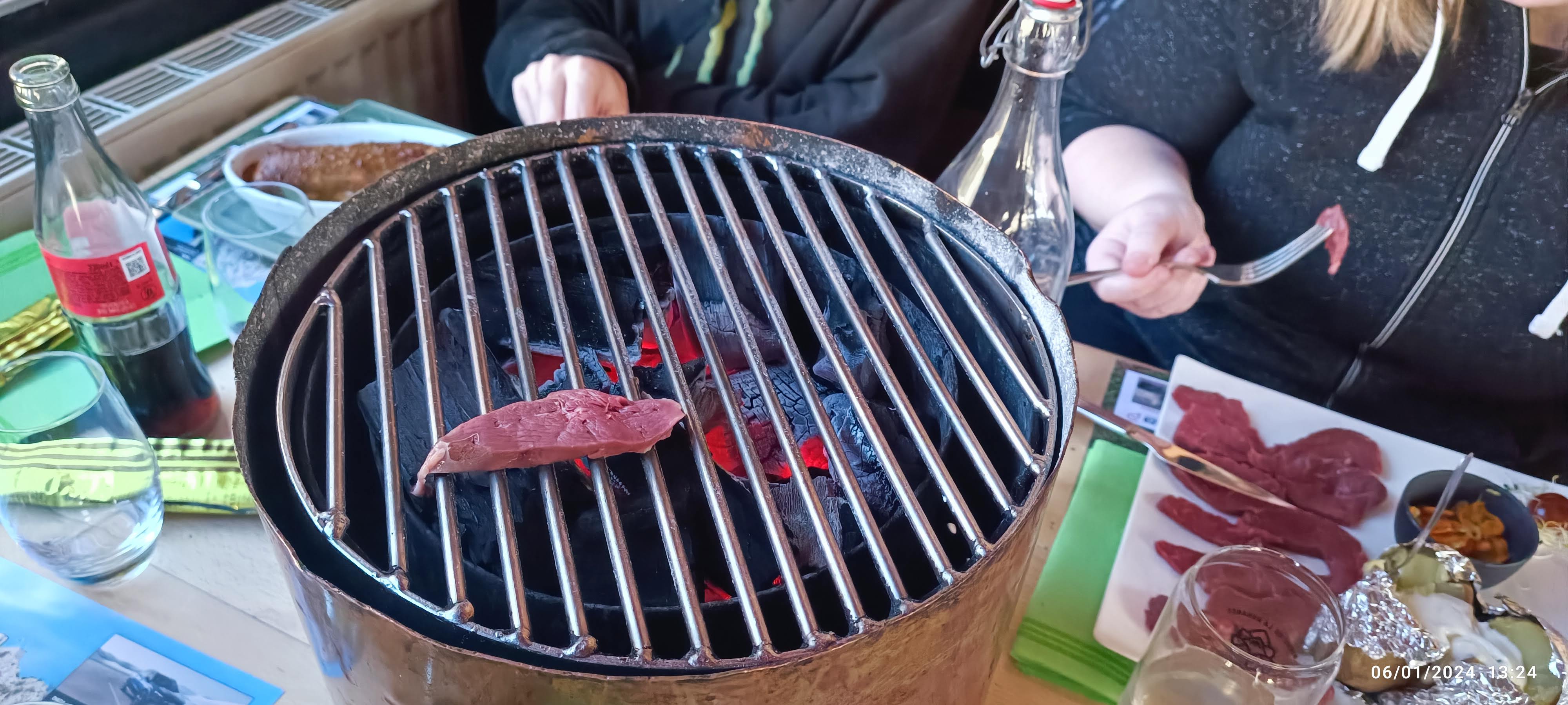 Très sympa, on se croirait dans un chalet de montagne,,tout en bois. La viande est de qualité et l’idée de la faire cuire soi-même sur un brasero posé sur la table est originale. Je recommande