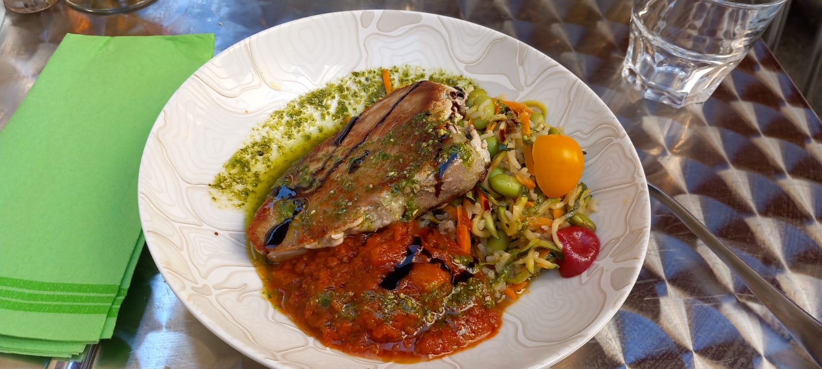 Excellente découverte. Tout est bon et cuisiné. J ai même eu droit à un plat personnalisé car je n'aimais pas un ingrédient. Tout est frais et servi avec le sourire. Une belle adresse à recommander.