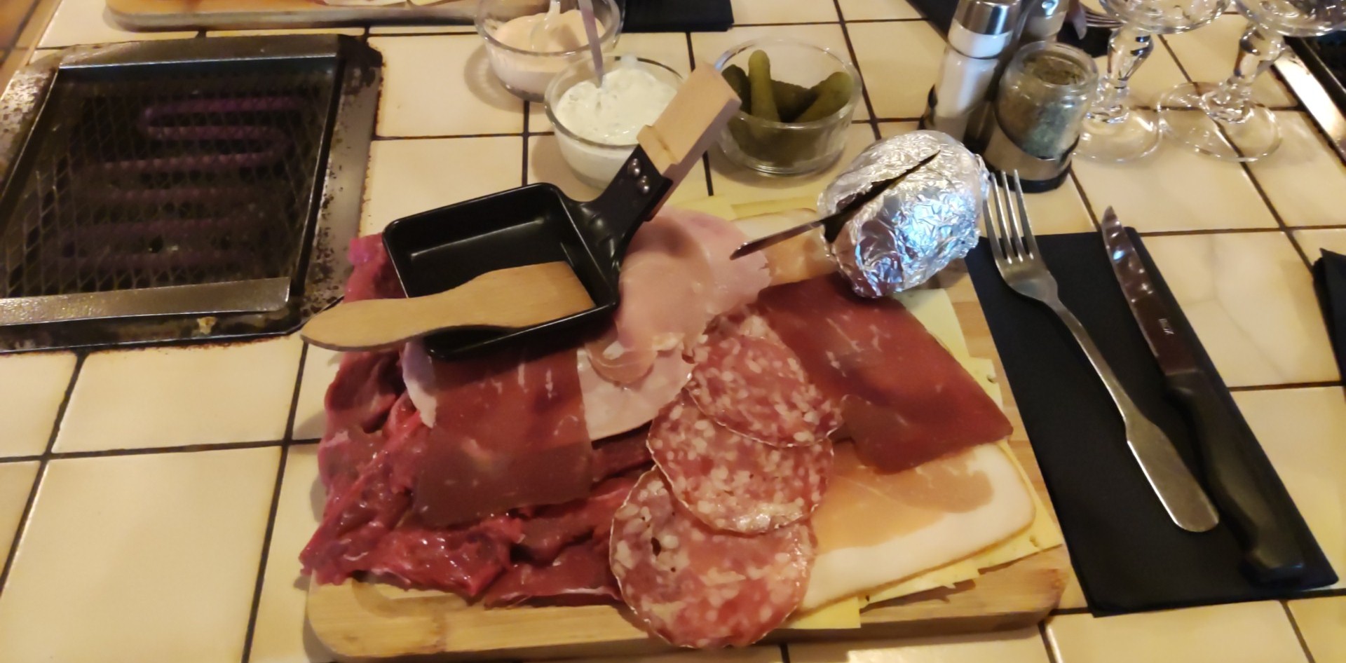 Excellent la raclette comme la viande ! Le seul bémol c'est que pour les grands gabarit on se sent à l'étroit !