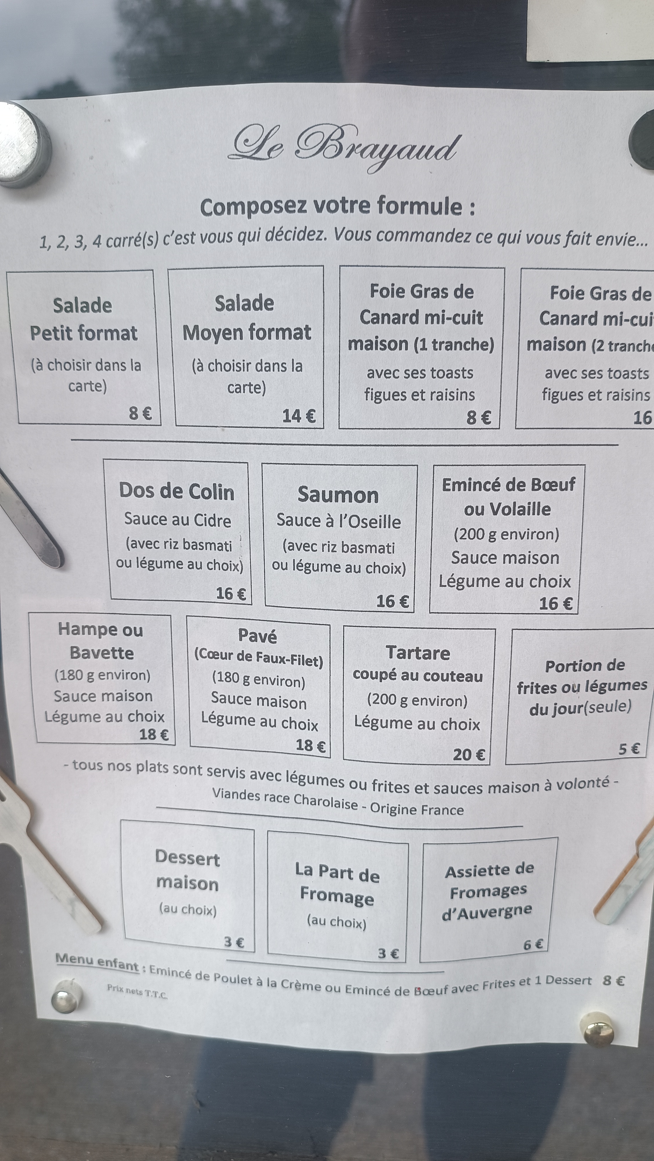 Je n’ai pas l’habitude de mettre des avis, mais j’estime que le restaurant Le Brayaud mérite vraiment d’être visité ! Chose assez rare de nos jours : tout est fait maison et cela se sent ! L’accueil est sympathique, et la petite apprentie a vraiment sa place dans le métier ! Un service très agréable avec des sourires ! J’étais venue il y a quelques années et j’en gardais un bon souvenir, nous sommes revenus hier et j’en garderai encore un bon souvenir ! Bravo à toute l’équipe !