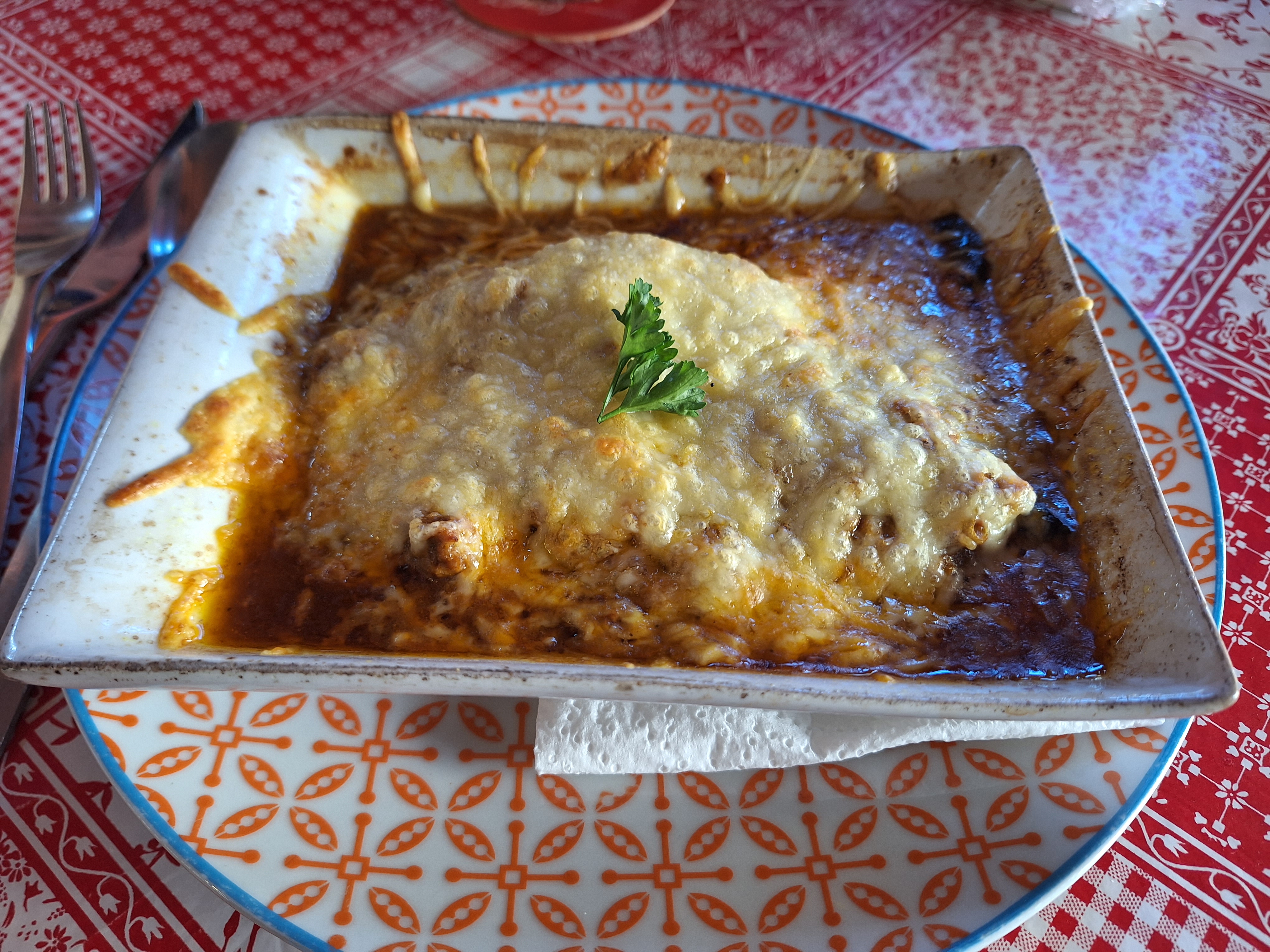 C'est un merveilleux restaurant local. Excellent service et nourriture délicieuse avec un très bon service. Le serveur aide mon petit français et j'ai apprécié les courgettes farcies. La farce était placée dans un petit renfoncement et était composée de viande hachée. Pour le pudding, le gâteau français était plein de délices, une belle génoise légère. Merveilleux.