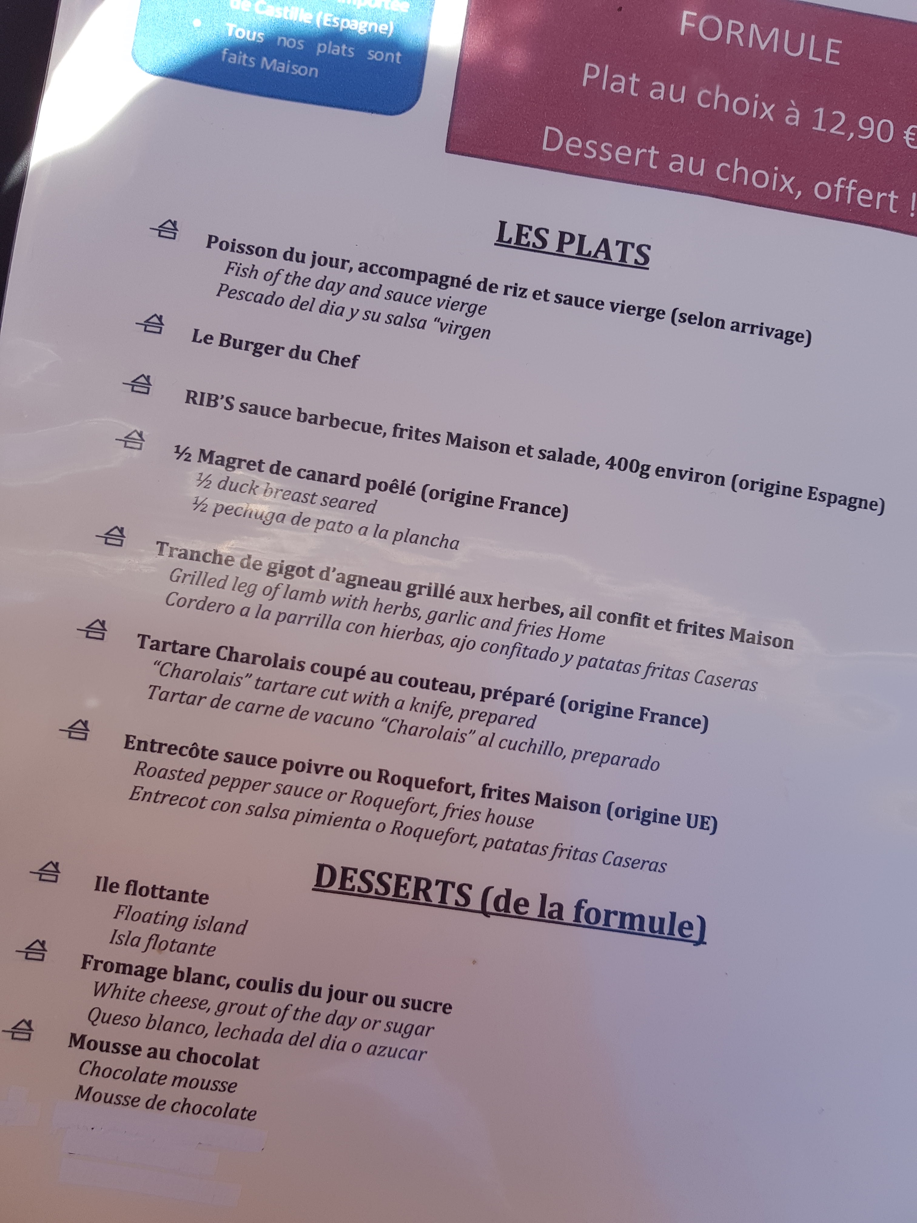 Tout est fait maison ! Le rapport qualité prix est super ! Le serveur était vraiment très aimable. Pour 12€90, vous avez un plat au choix à la carte et un dessert offert. Les quantités ne sont pas immenses mais pour le midi c'est parfait. Ouvert 7j/7 et midi et soir. Je recommande.