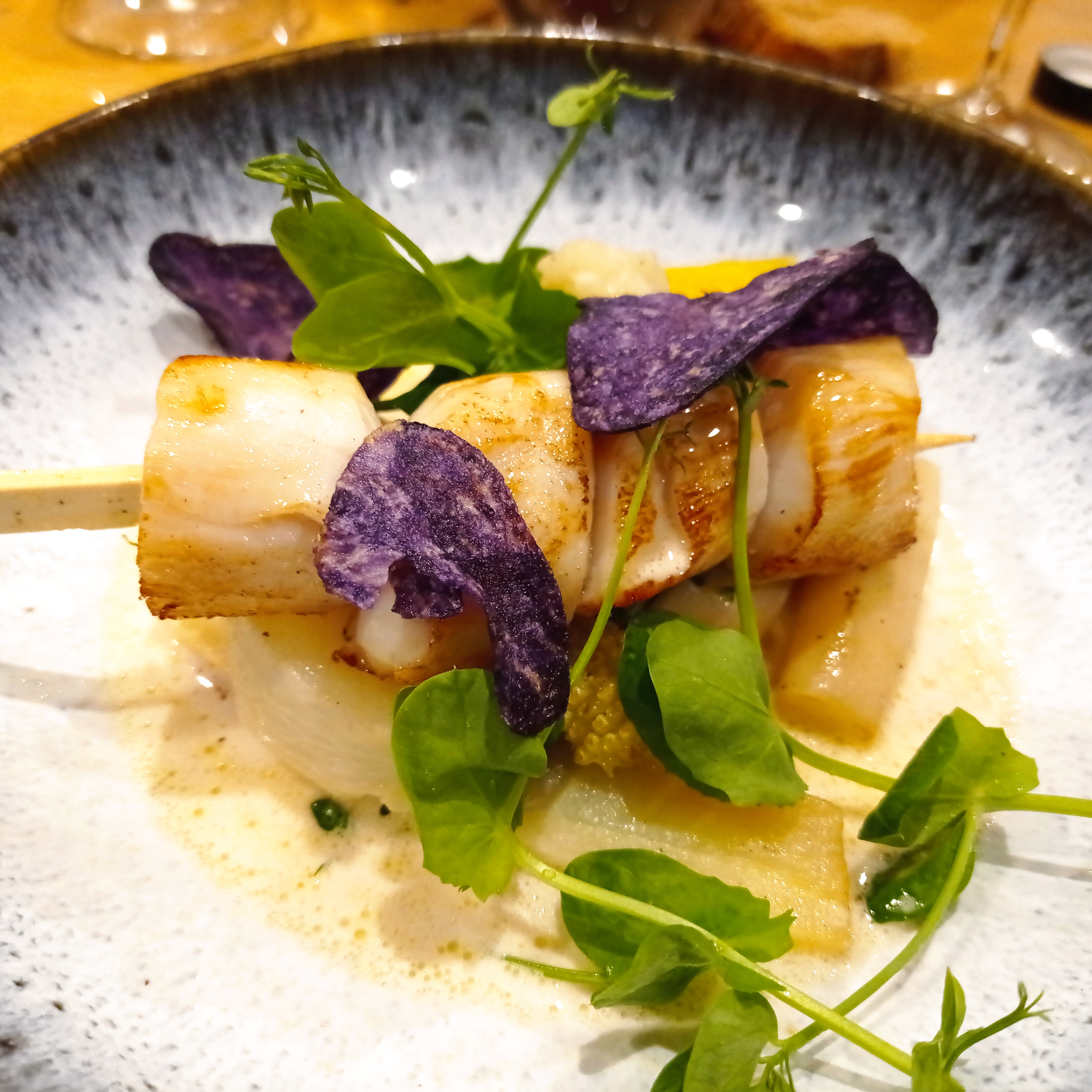 Nous y avons mangé avec des amis, et nous avons pris le menu dégustation avec lequel on se laisse guider par le chef ! On s'est régalé, tant sur l'esthétique des plats, que sur les saveurs. Que du plaisir ! A vos papilles !