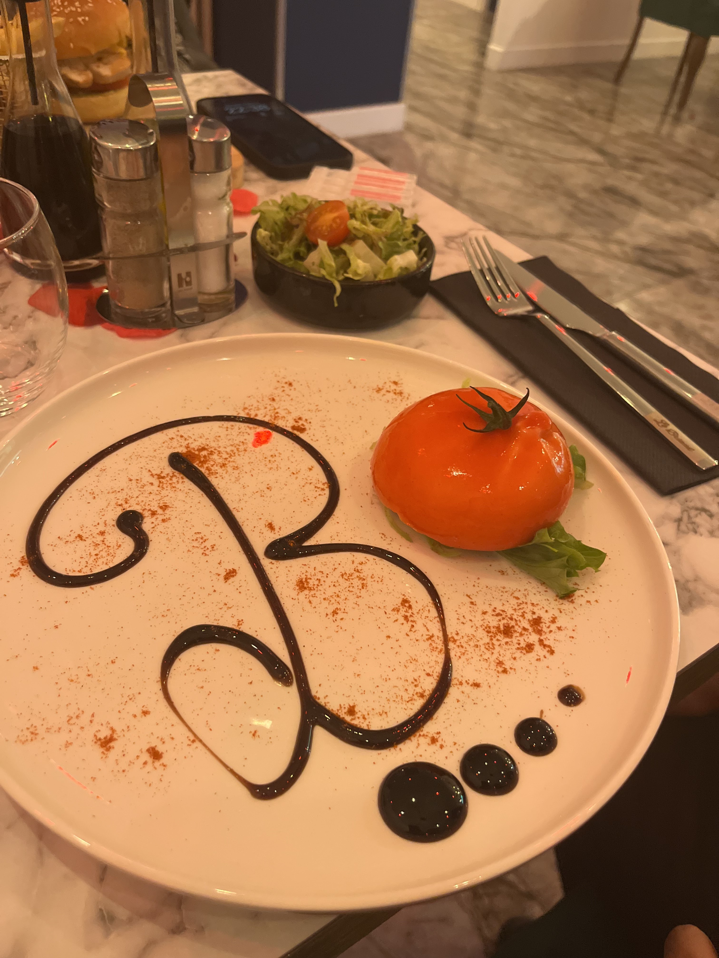 Mon conjoint et moi avons très bien mangé. Nous avons été bien accueillis. Foie gras et tartare de saumon en entrée, black Burger et pièce du boucher en plat et une salade de fraise aromatisée au citron et quelques feuilles de menthe à partager. Merci pour cette petite soirée, à bientôt 😁❤️