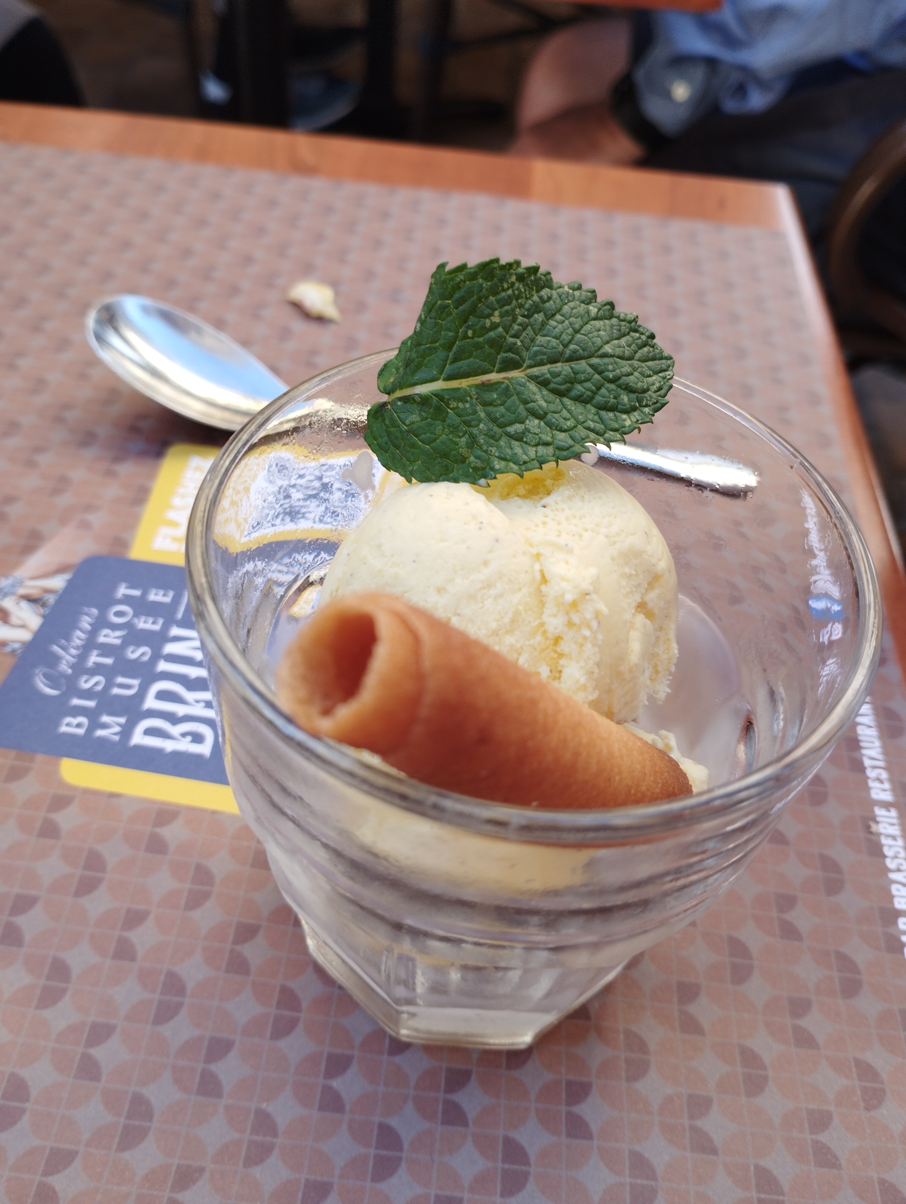 Plongés dans l'ambiance rétro avec le musée, nous nous sommes régalé de la bonne cuisine ! L'entrée : une assiette de saumon était exquise, la crème d'anethe passait très bien. En plat j'ai pu savouré le camembert rôti accompagné de pommes de terre sautés et de charcuterie + salade. Une boule de glace à fini de nous rassasier. Je recommande ce restaurant, les serveurs sont très serviables et à l'écoute, il y a très peu d'attente