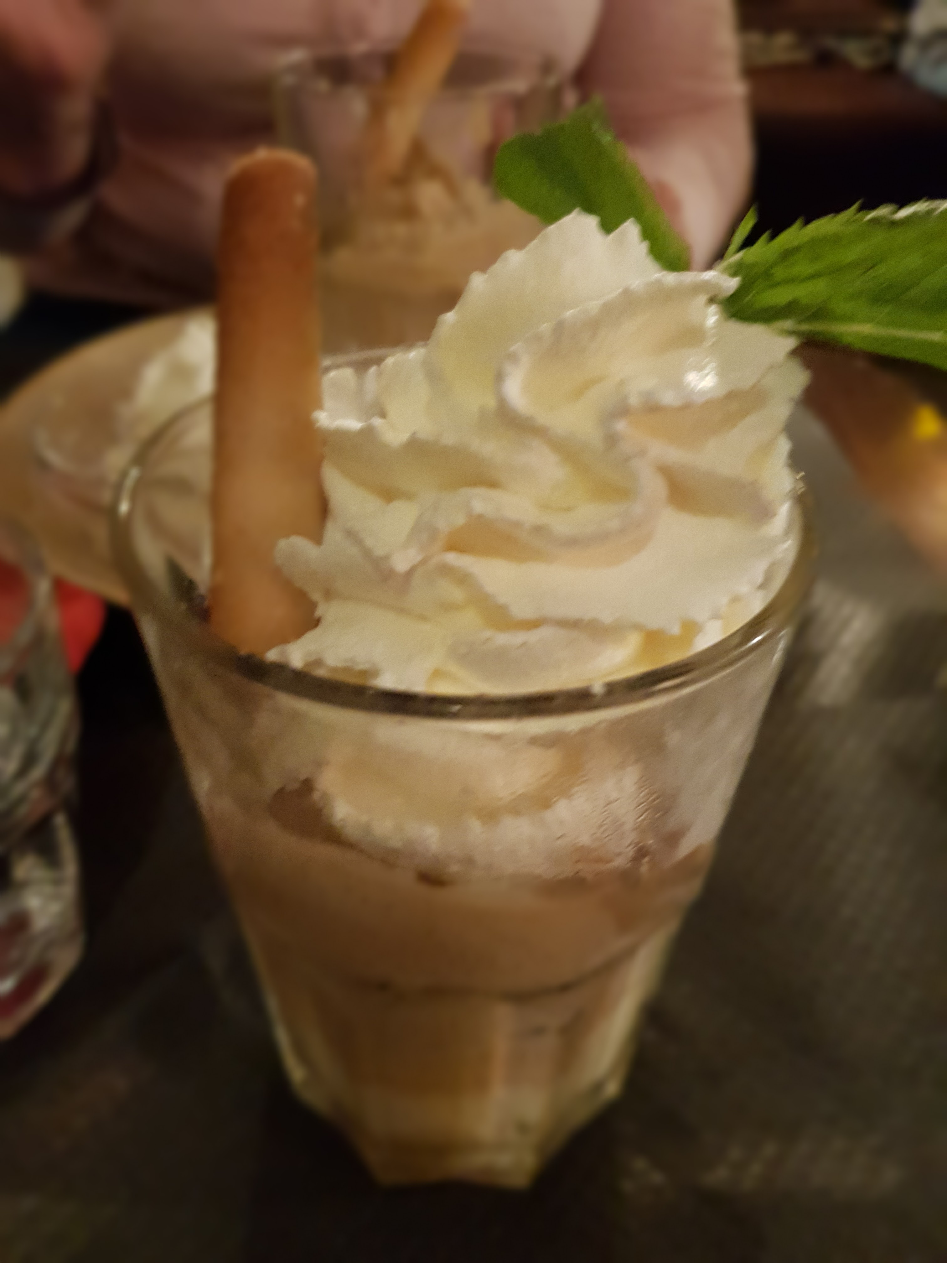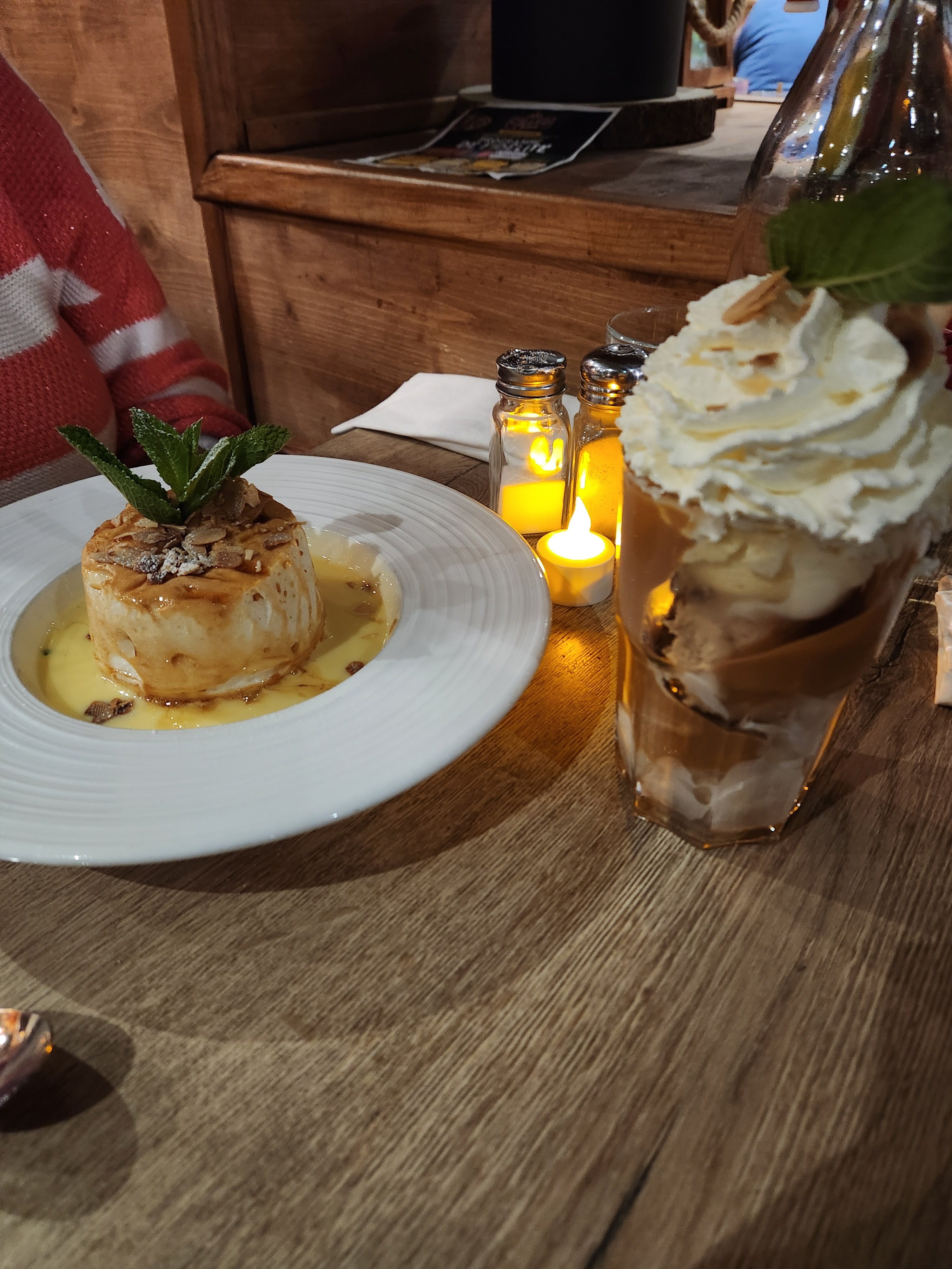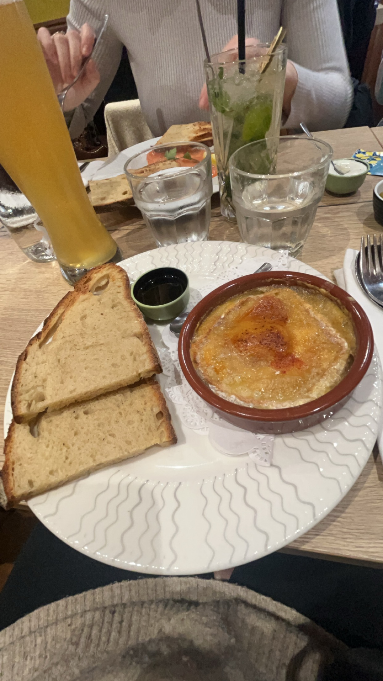 En ce qui concerne l'apéritif : la Pina Colada était divine, ce qui est très très rare dans les restaurants en France ! Bravo ☀️ Pour les plats : les moules étaient amères, elles étaient toutes sèches dans leurs coques & recroquevillées sur elles-mêmes. Le welsch très bon, on sentait le goût de chaque aliment ! Un peu huileux mais le cheddar était de bonne qualité. Le burger que j'ai pris pour ma part m'a laissé d'un avis mitigé : le pain était super bon, le fromage aussi, la viande très bonne mais le bacon était peu cuit & il manquait de sauce ce qui le rendait très sec. Mais ça s'est vite arrangé avec la demande d'une sauce supplémentaire. Par contre.. je tiens à parler des desserts : ma maman a adoré sa tarte tatin bien copieuse, le dessert au Nutella à ravi ma petite sœur & mon copain, & pour ma part c'était la meilleure crème brûlée que j'ai mangé ! Bonus aussi pour la déco super originale & les seveurs/serveuses super adorables <3