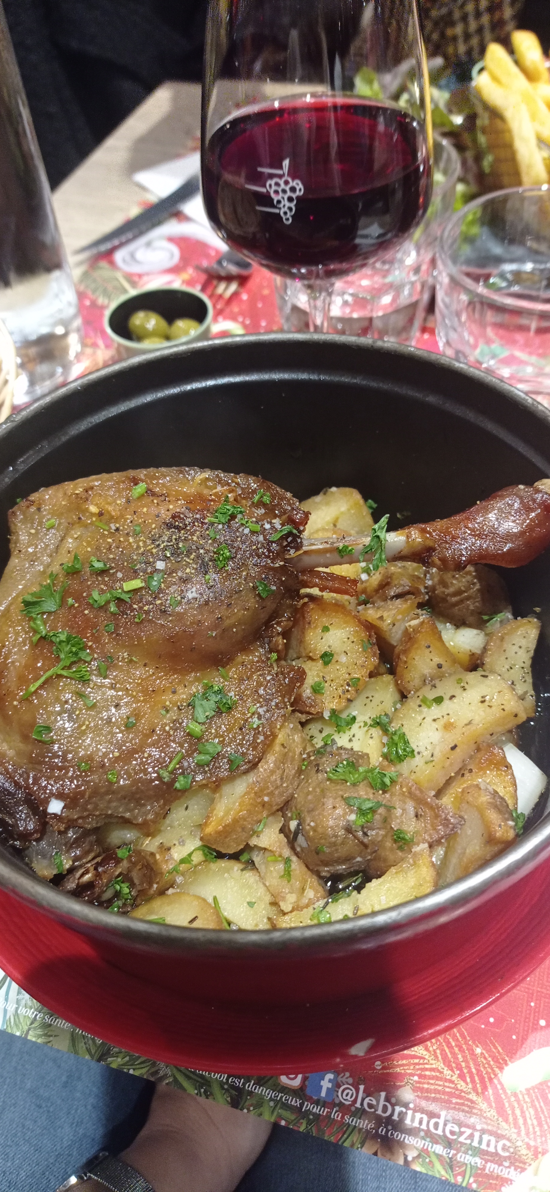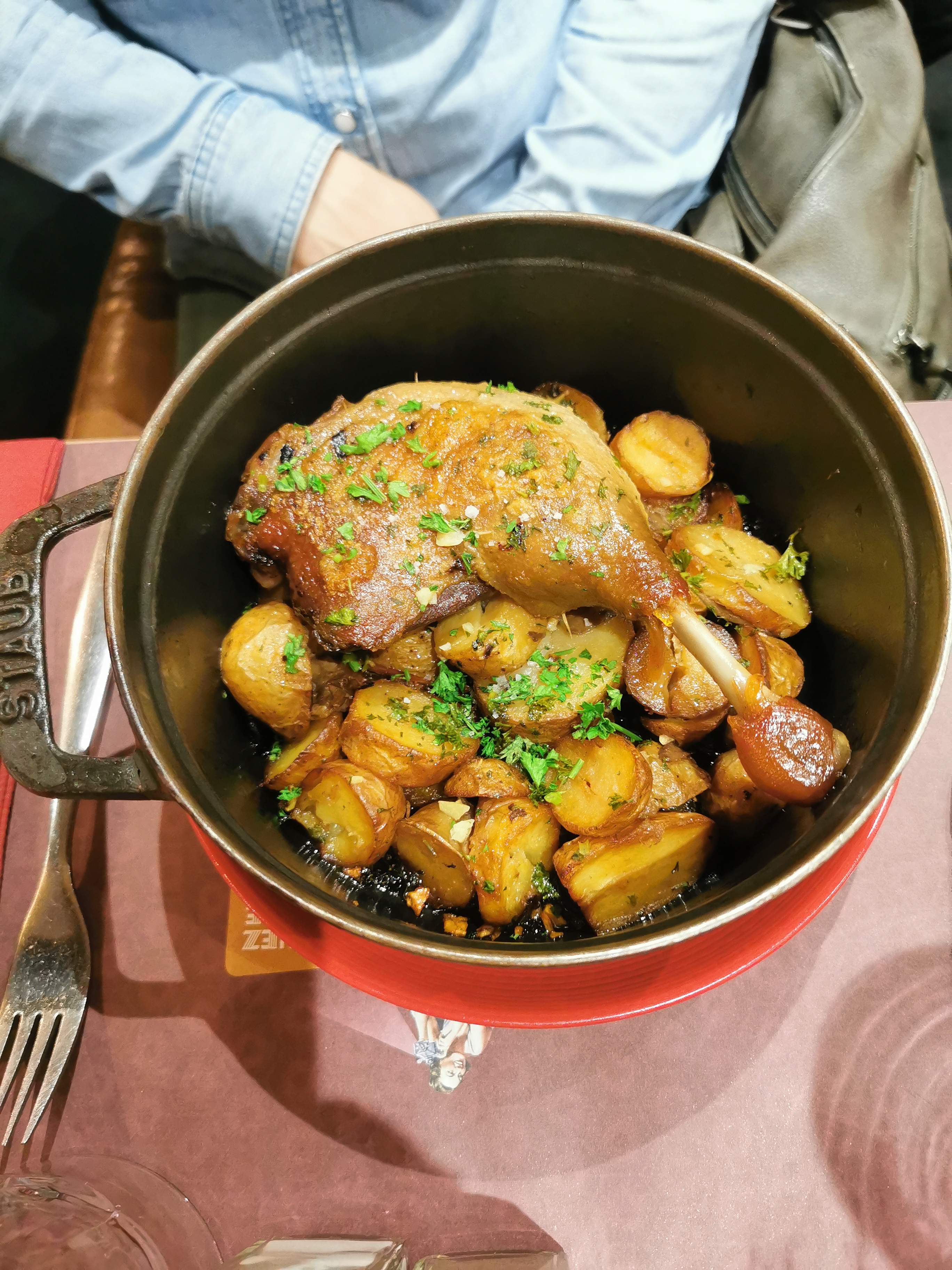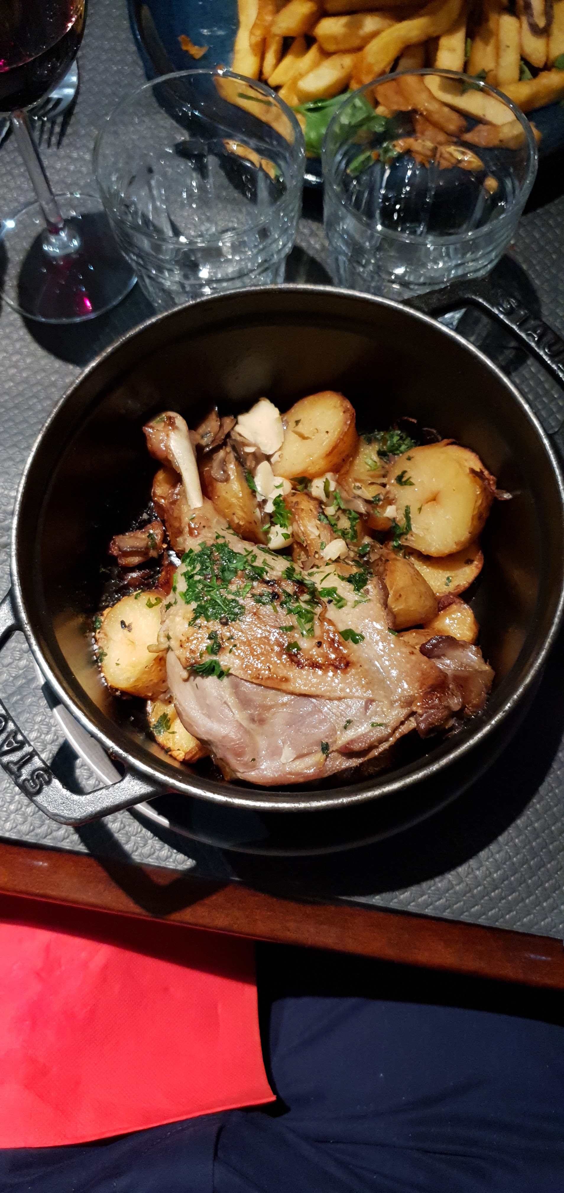 On a passé un très bon moment. Bon plat. Bon vin. Service très rapide. Nous avions commandé un confit de canard en cocotte et un tartare de boeuf. Nous nous sommes régalés. Et un symbole de ma ville d'origine m'a accueillie 😉