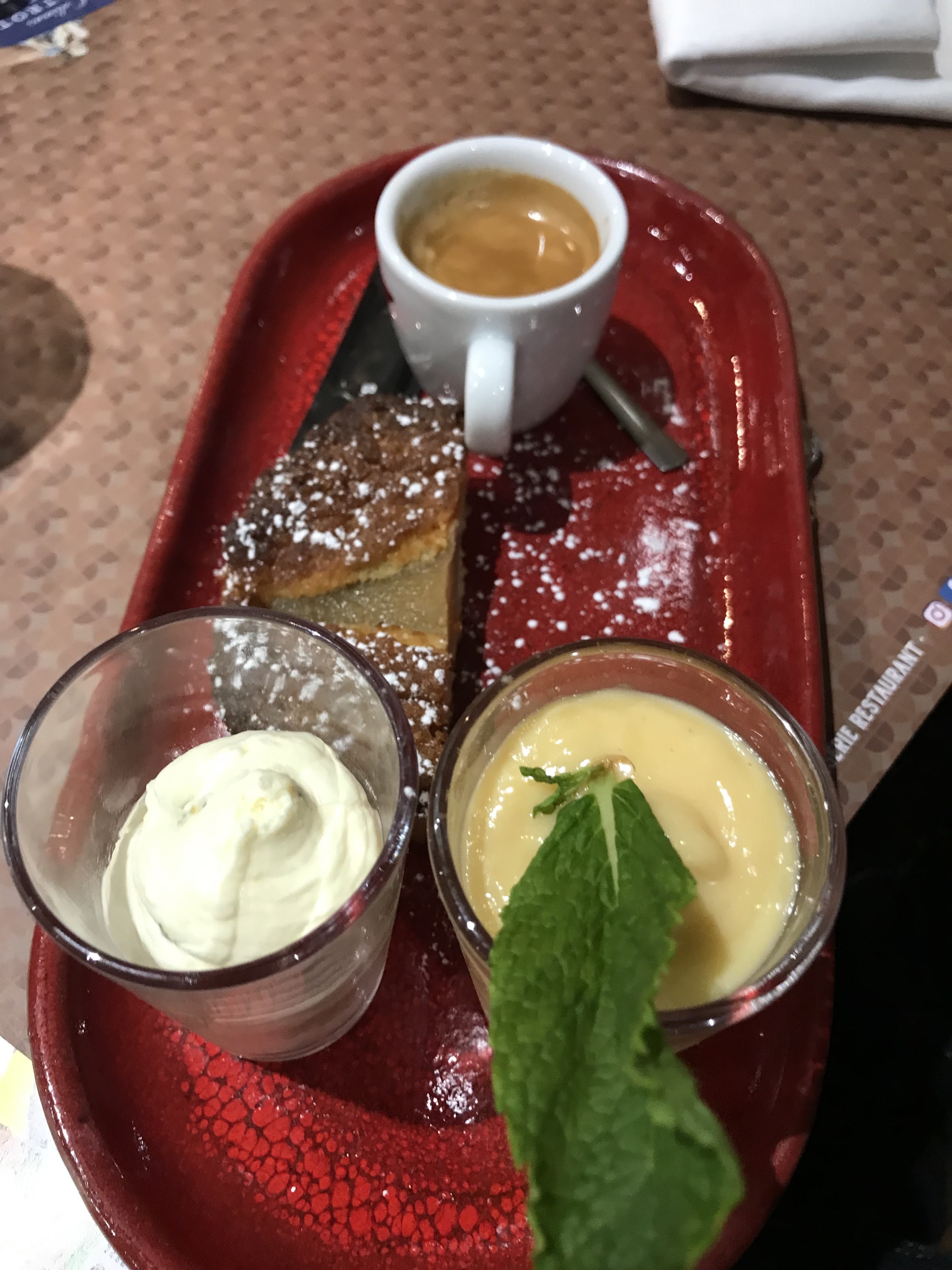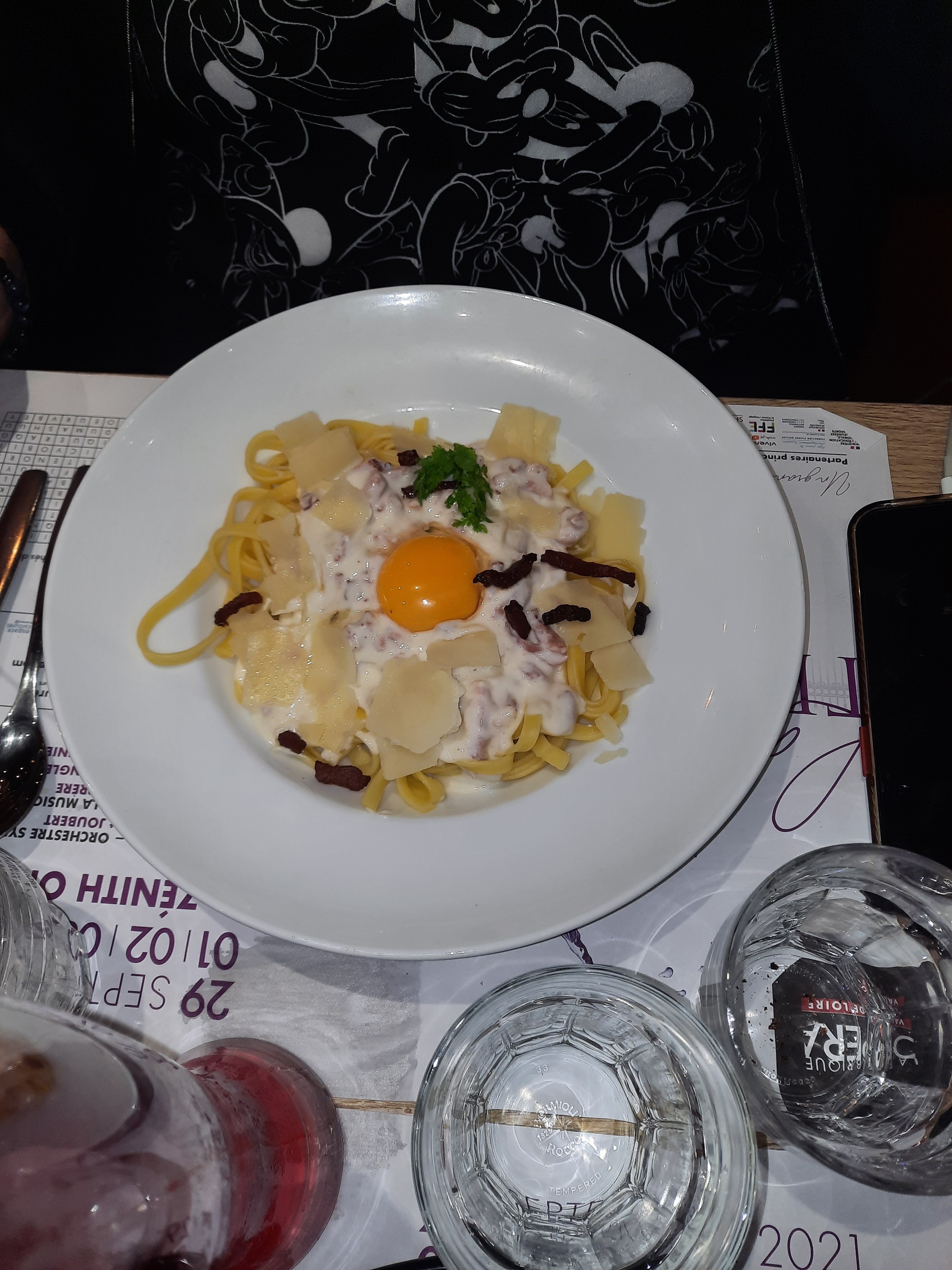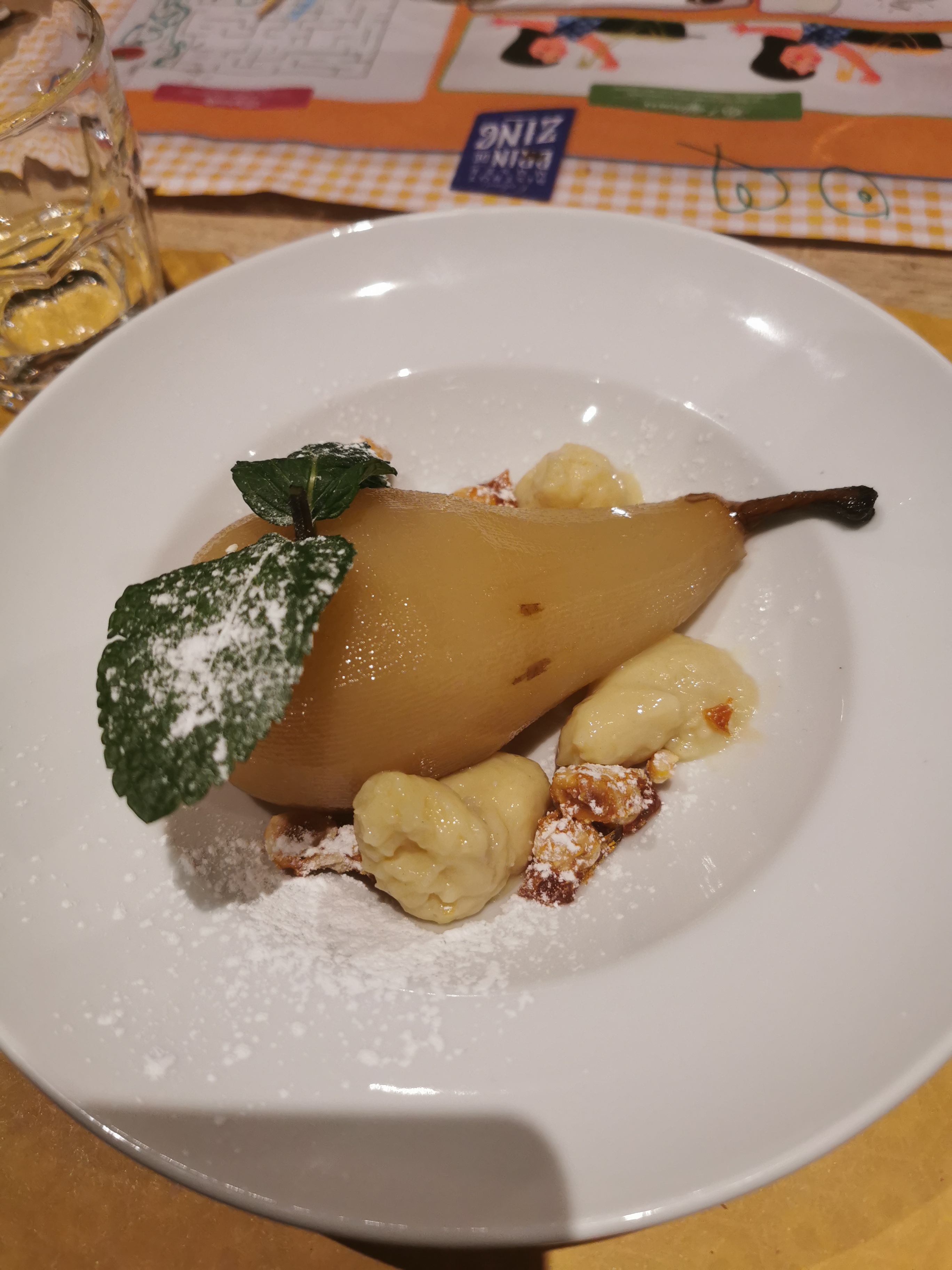 On a passé un très bon moment. Bon plat. Bon vin. Service très rapide. Nous avions commandé un confit de canard en cocotte et un tartare de boeuf. Nous nous sommes régalés. Et un symbole de ma ville d'origine m'a accueillie 😉