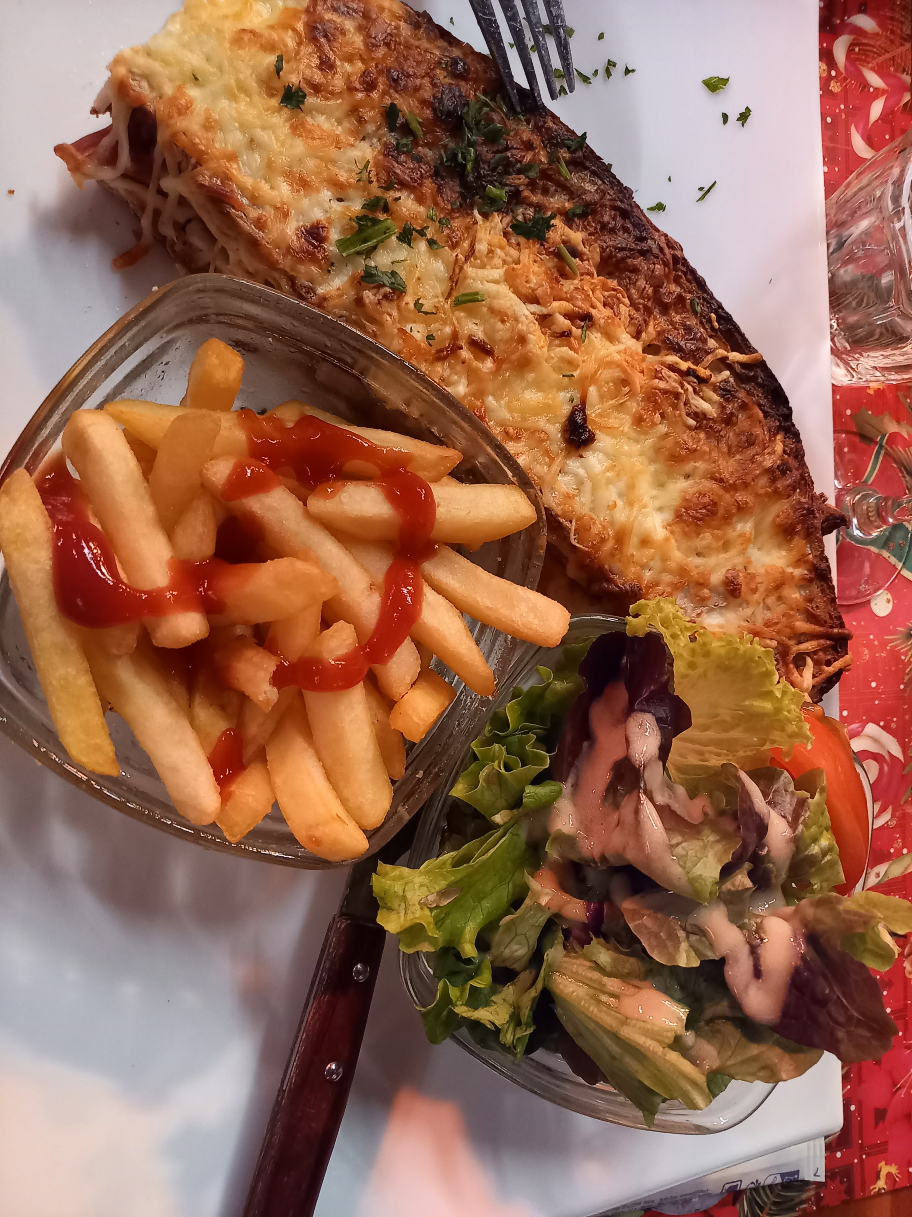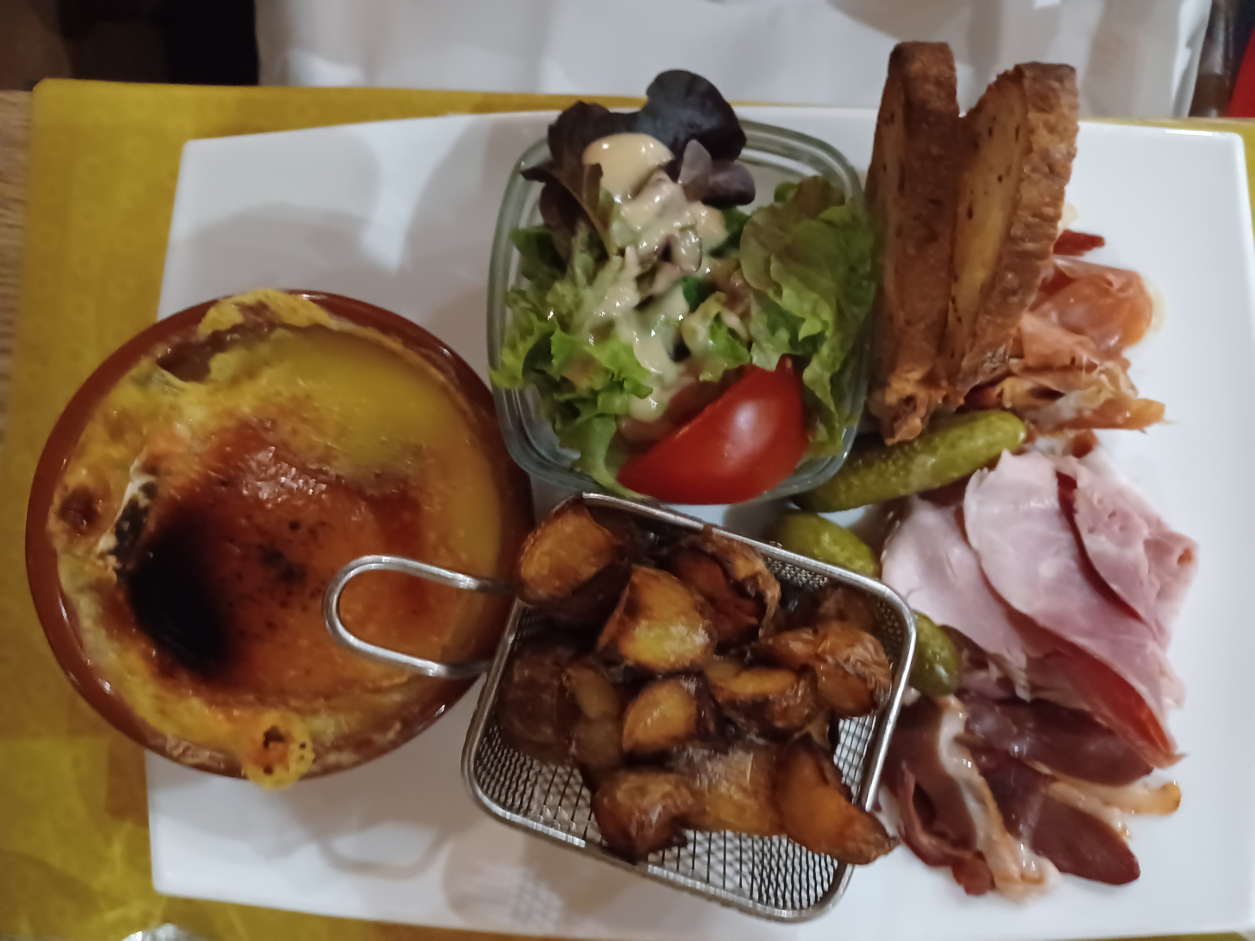 Service rapide et personnel agréable. Nous avons testé un croque monsieur avec un œuf, salade et frites. Assiettes copieuses. Nous reviendrons y déjeuner avec plaisir.