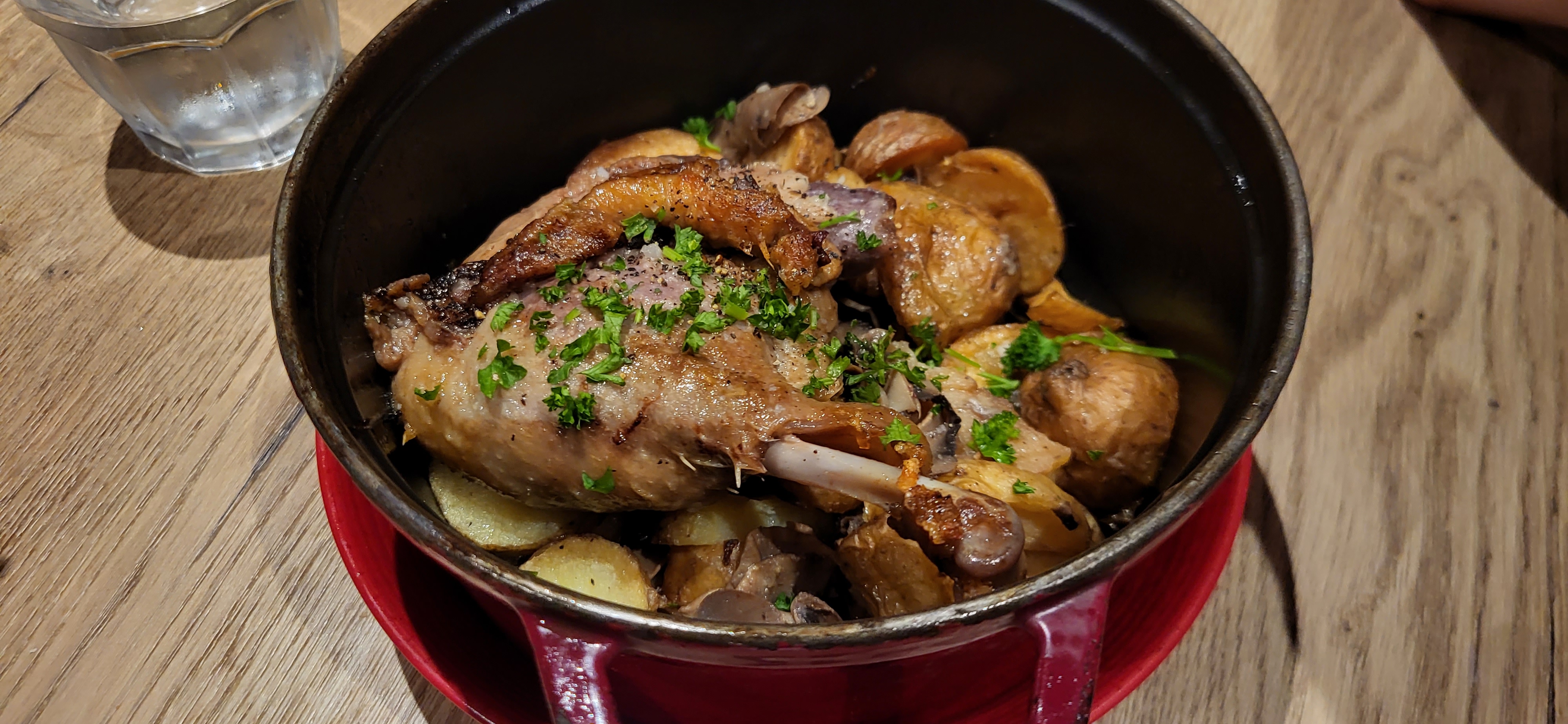 Cuisine à la bonne franquette, je recommande les cocottes qui ne sont pas faites pour le régime mais c'est ça qu'on aime ❤️ vive les patates fondantes et un service de qualité