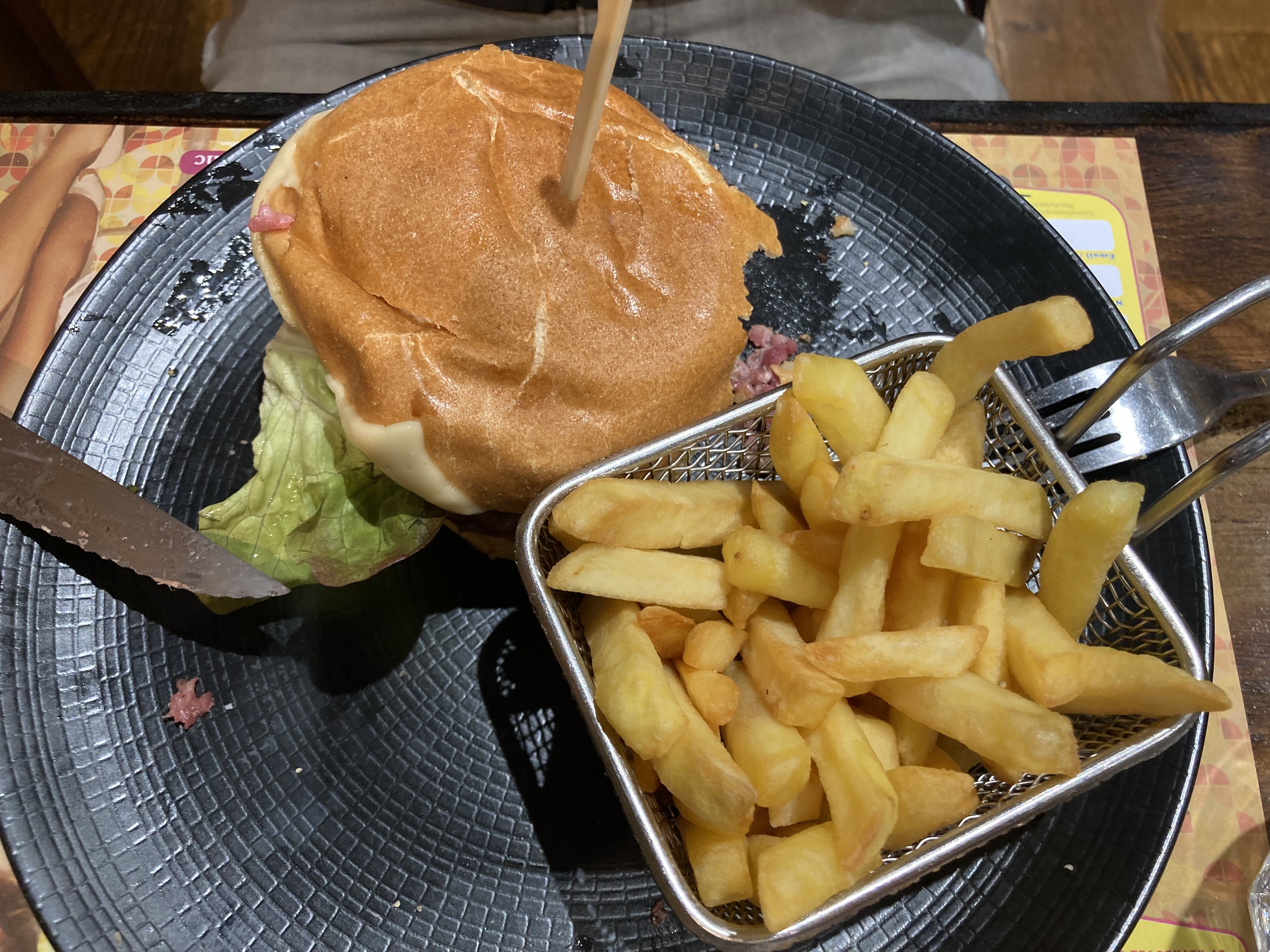 Restaurant atypique et vraiment enchanteur de part son décor qui nous ramène aux souvenirs d'enfance. Menu enfant copieux et de bonne qualité pour ma fille de 5 ans, burger parfait pour mon ado. Bavette et cassolette de légumes pour moi, j'ai beaucoup apprécié les légumes. Accueil par un serveur très pro à l'entrée, un peu plus déçu par l'accueil des serveuses à l'intérieur, pressées de débarrasser la table. Il fait très chaud aussi dans la salle où les tables sont très serrées les unes aux autres.