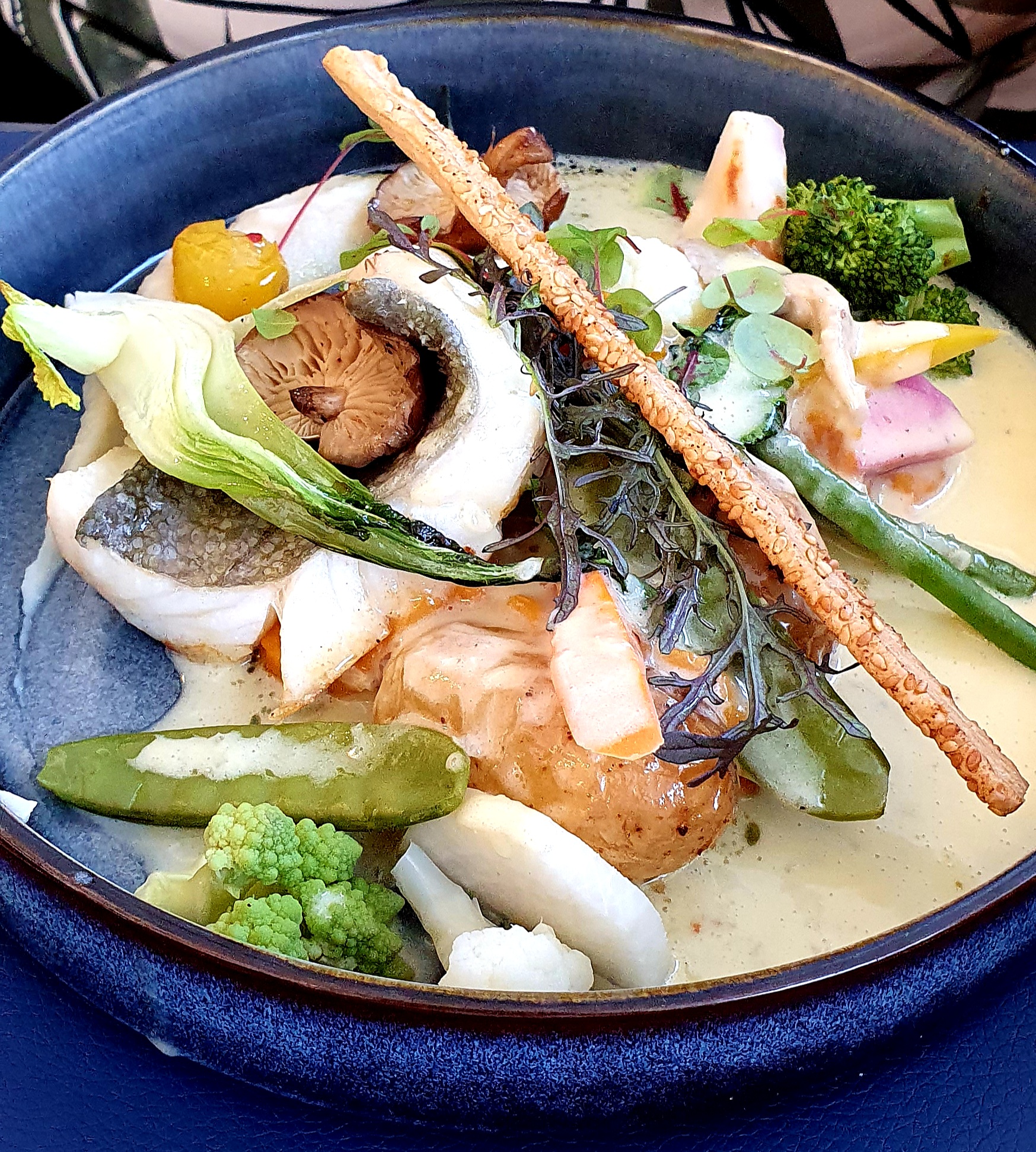 Tres jolie présentation des plats Plats savoureux avec des produits frais et de saison Service parfait Endroit calme et apaisant Rien à redire Tout était parfait