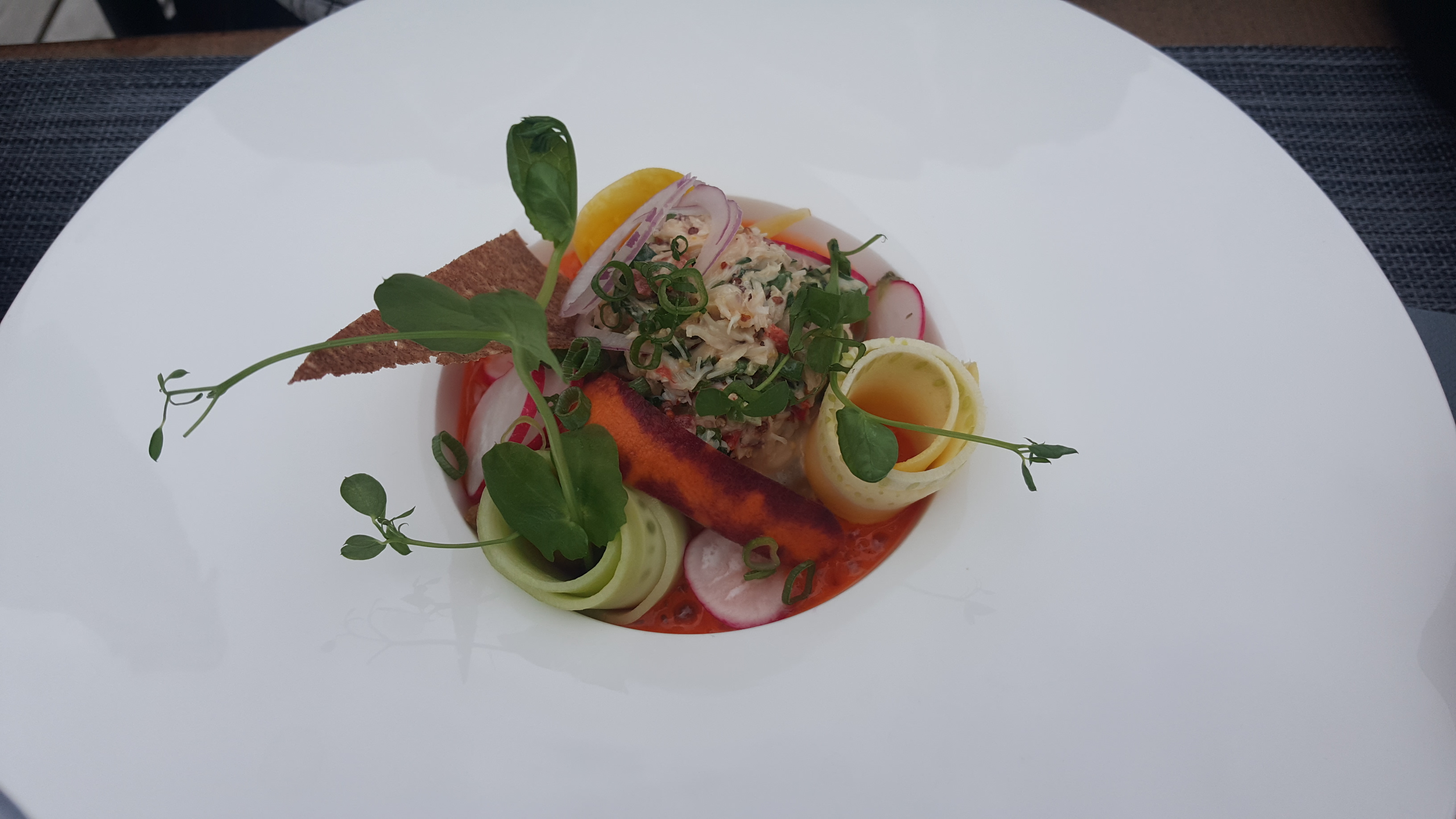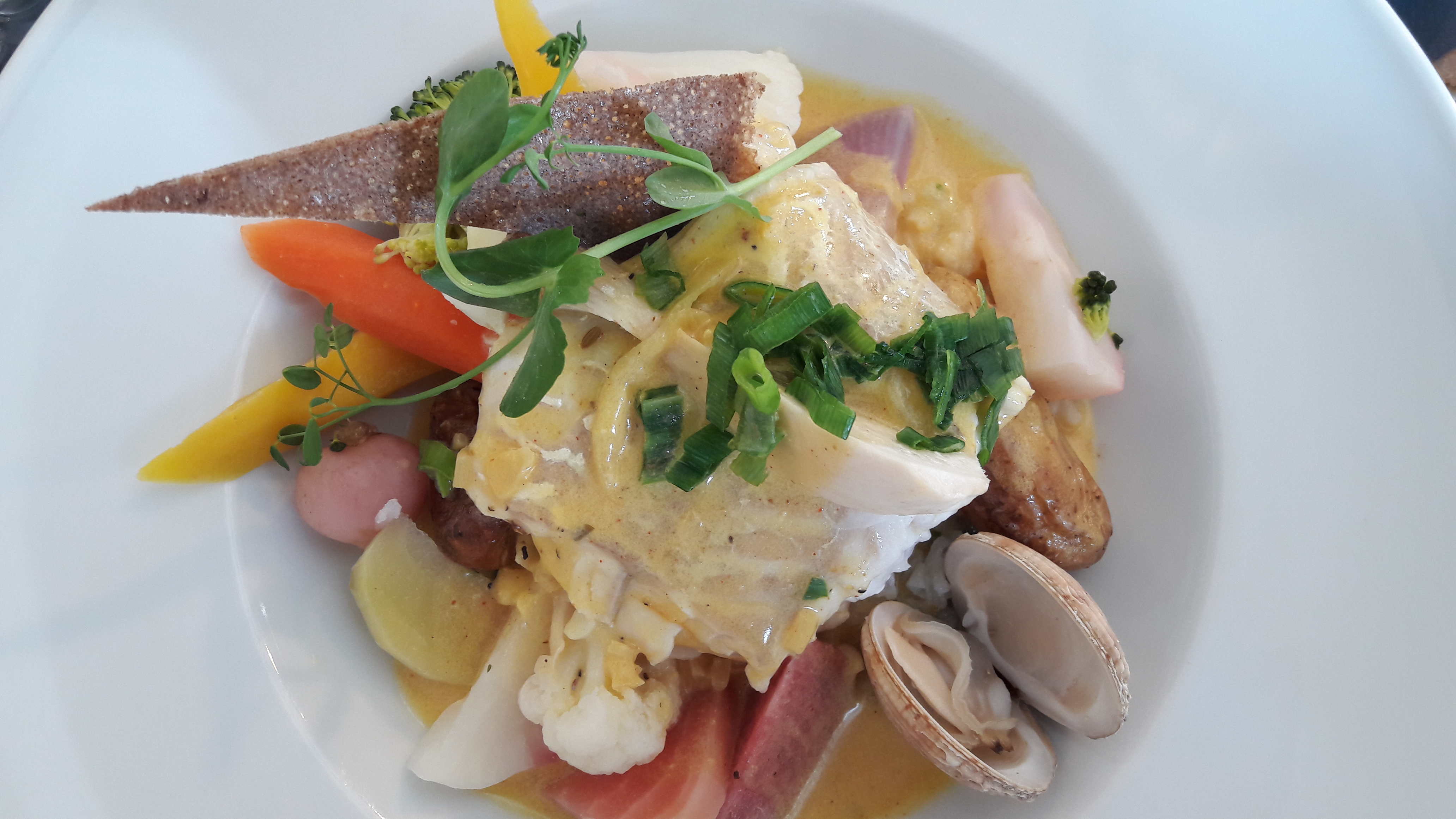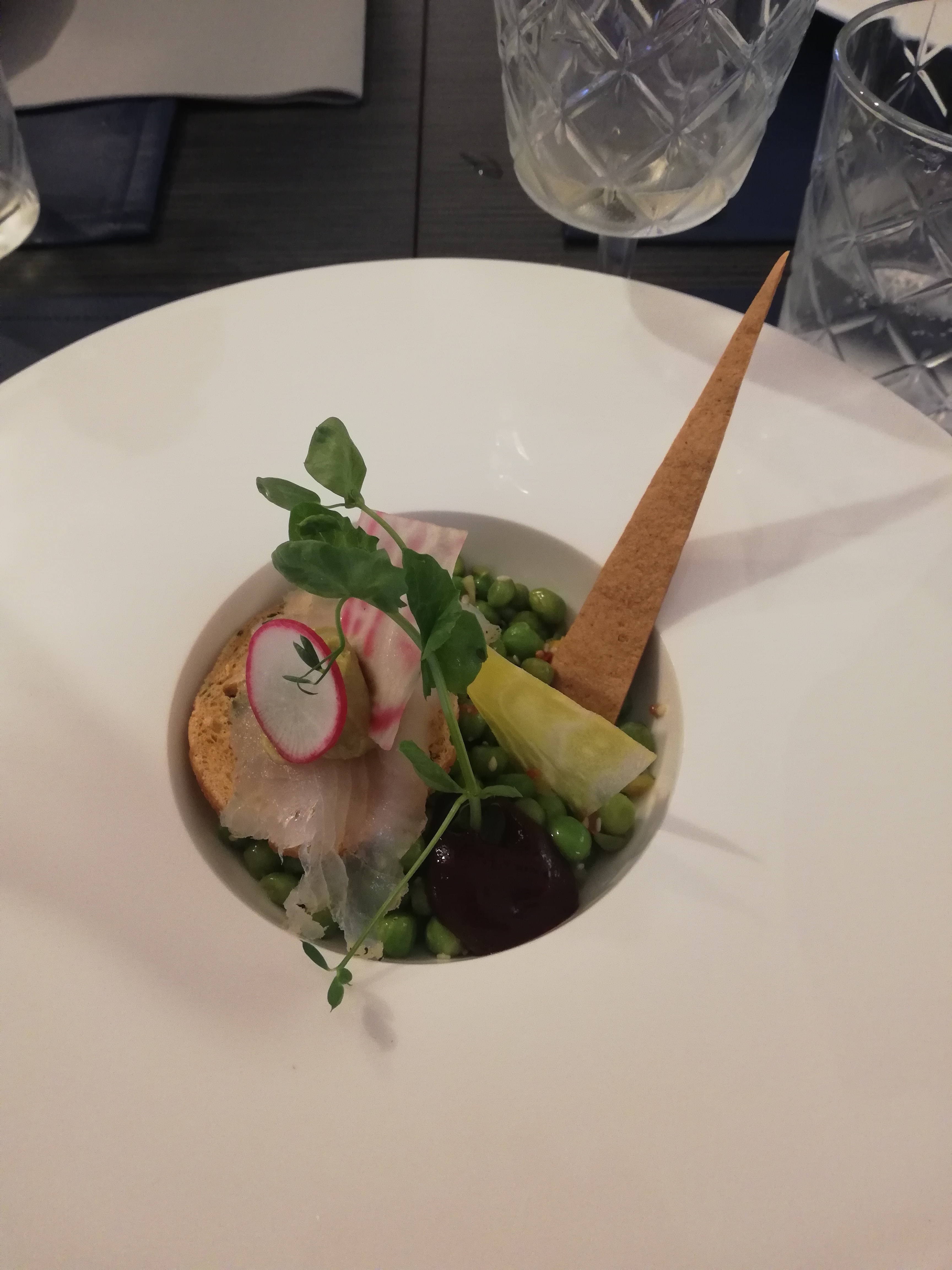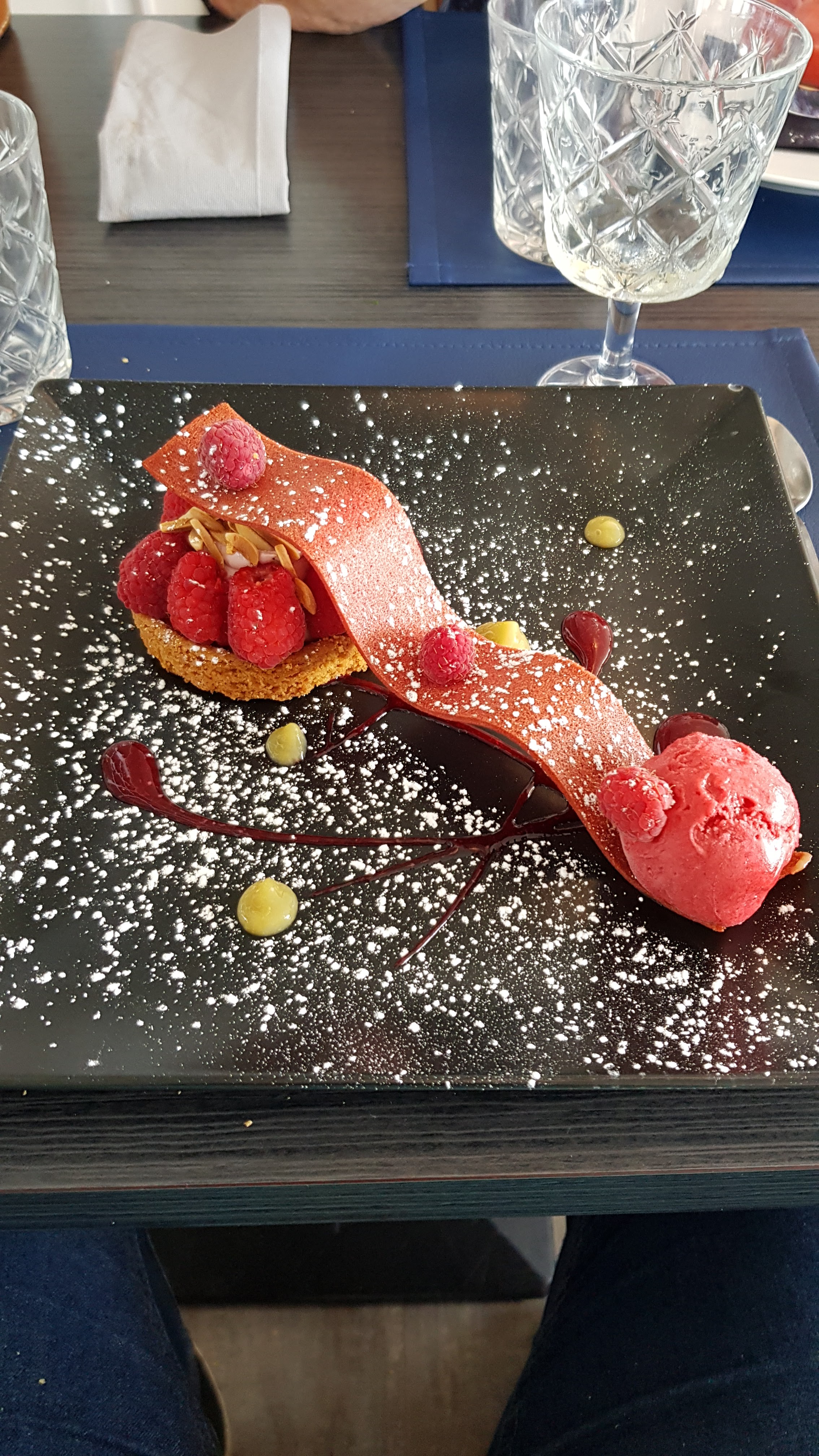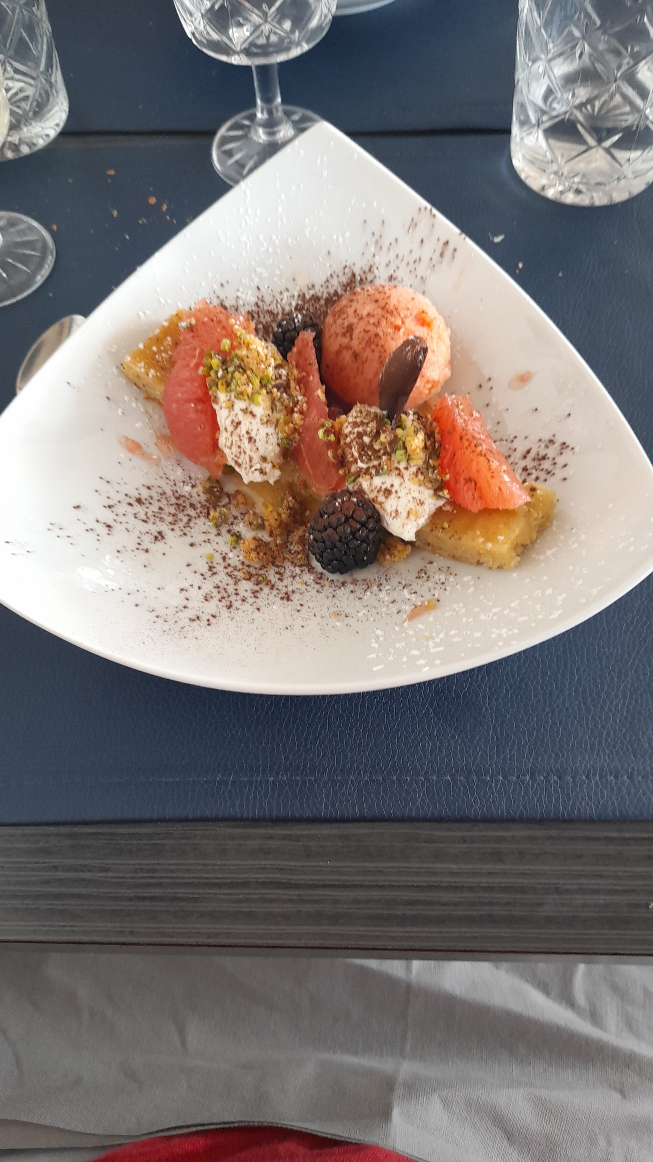 Tout était parfait... un très bon moment... le repas était aussi joli dans l'assiette que delicieux pour les papilles... tout est maison.. mention spéciale pour le dessert avec la nage d'agrumes et son biscuit citronné un délice... si vous passez sur Roscoff, n'hésitez pas, c'est succulent... vous ne serez pas déçu ...