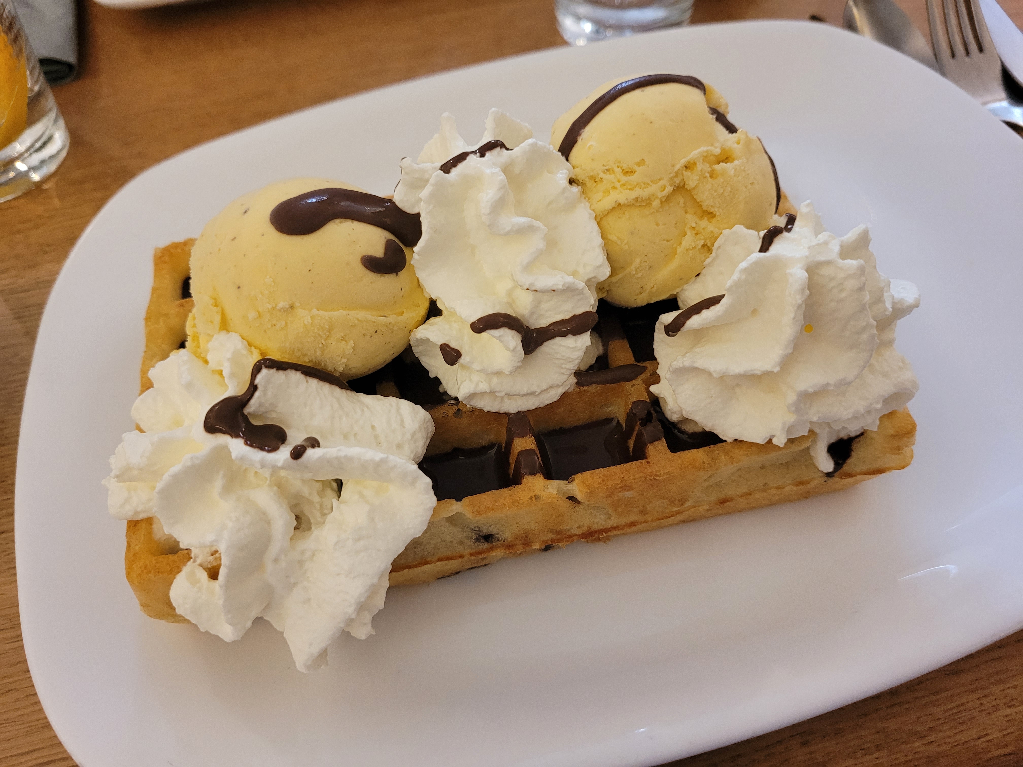La gaufre au caramel au beurre salé était délicieuse, le caramel est le meilleur que j ai mangé. La terrasse était très agréable et le service rapide et bien fait. Je recommande.