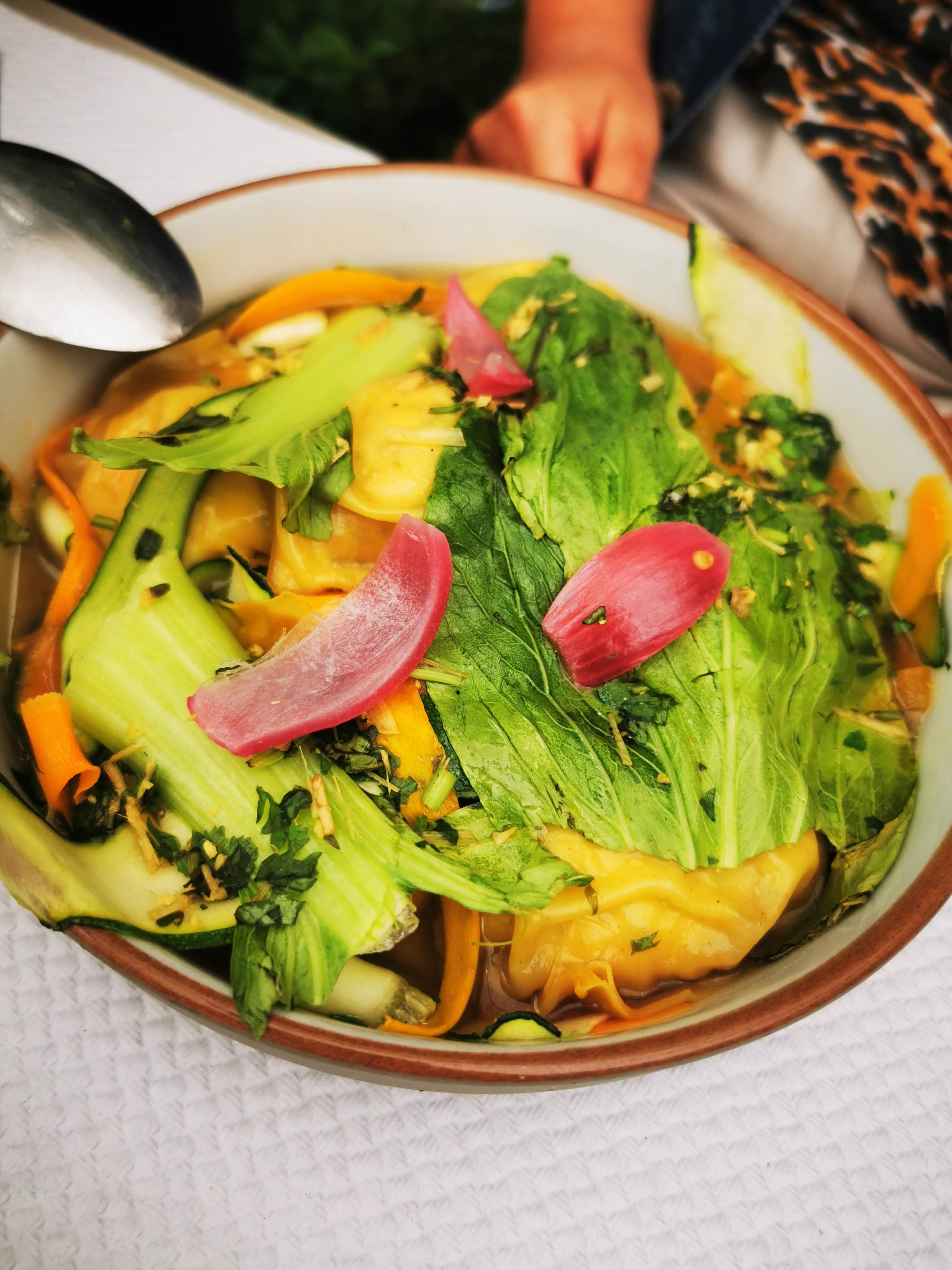 J'ai attendu toute la semaine pour pouvoir aller dans ce restaurant ! Cadre agréable, jolie terrasse, serveuses et patron sympas. Un peu déçue par le plat ravioles bouillon Thaï qui était fade, manquait de saveurs . Un bé endroit.
