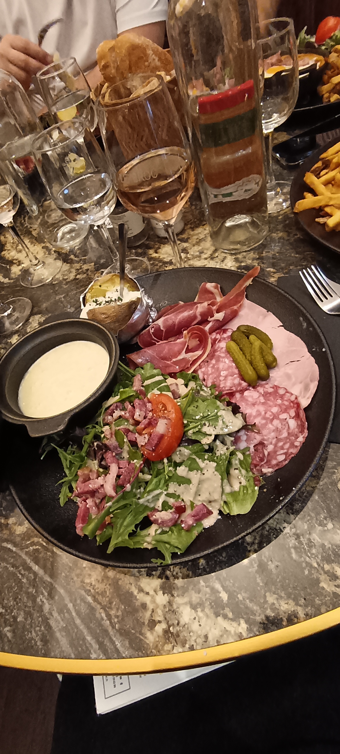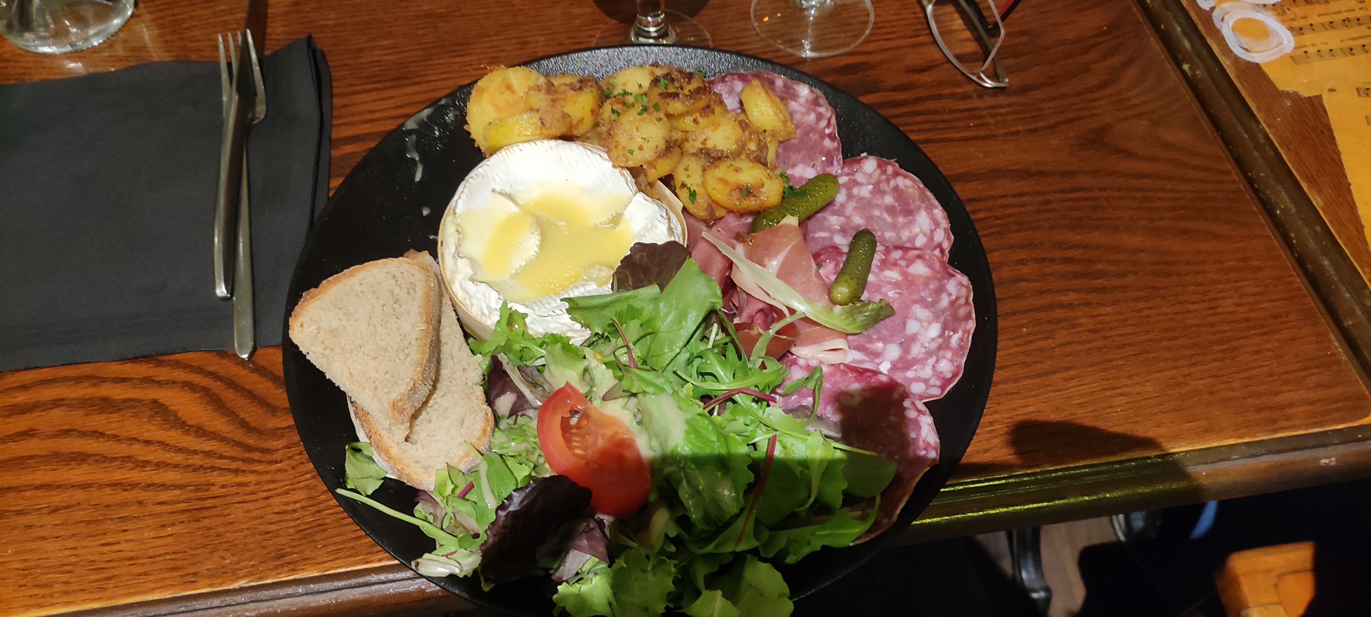 L’ambiance du restaurant est bonne mais la charcuterie vient tout droit d’un sachet supermarché et le fromage est bon mais pas aussi bon qu’il ne devrait l’être dans un restaurant de fromage.