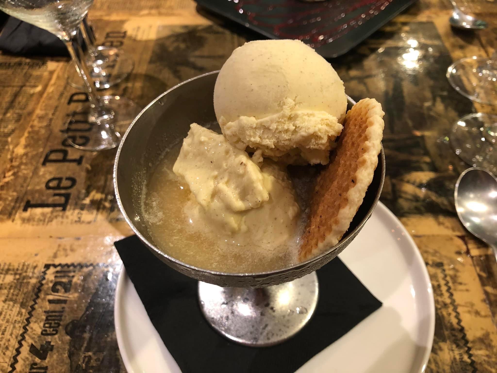 Repas copieux et délicieux, grosse déception sur le dessert qui était une île flottante, tout était industrel, 4 morceaux de blancs d'œufs baignés dans une piscine de crème anglaise industrielle sans caramel. Très fade et assez cher (7€) pour une île flottante à 1€ à auchan avec plus de goût. Malgré cette note négative et le prix assez élevé (107€ pour deux), je recommande.