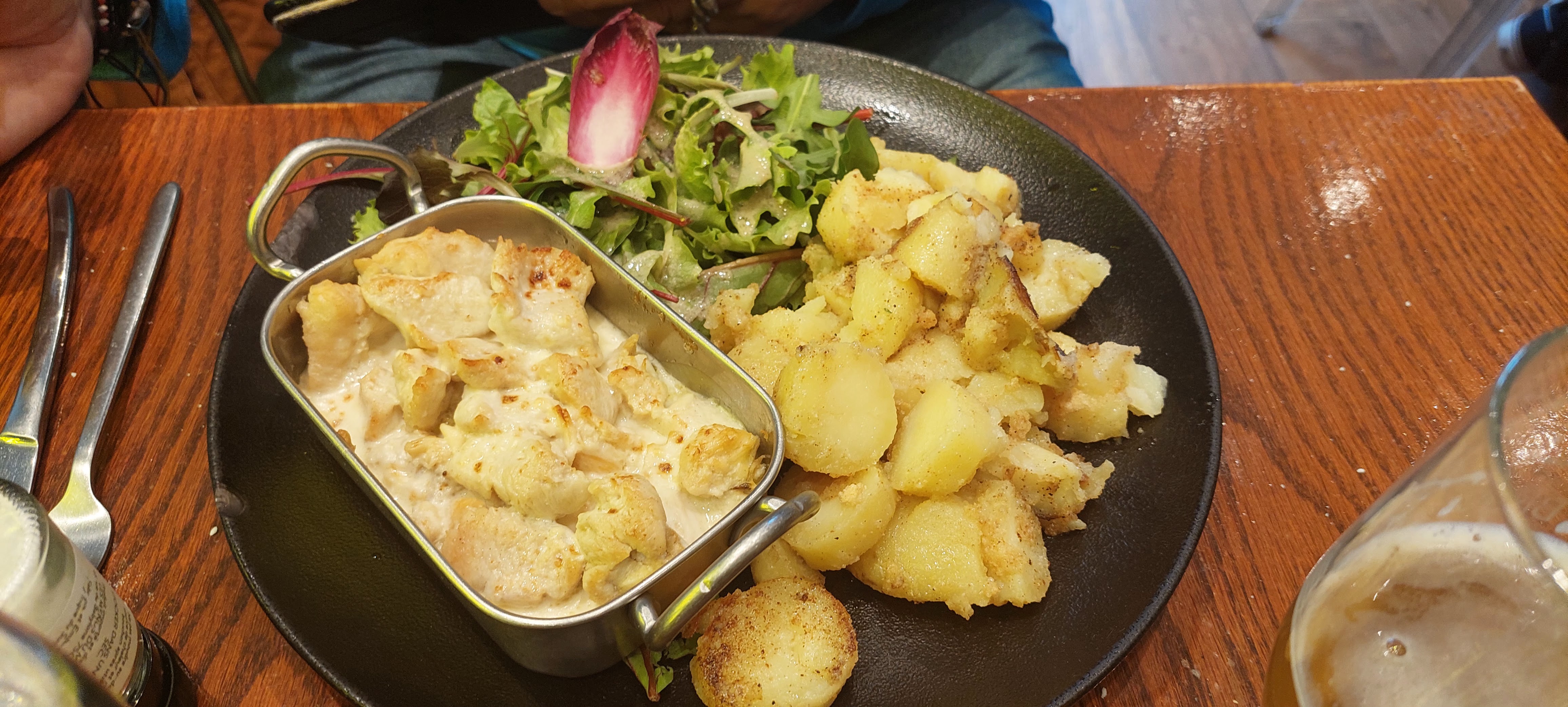 La nourriture était bonne, même si c'était dommage qu'il n'y ait plus de côtes de bœuf ! Tellement de fromage. Les bières étaient inhabituelles mais chacun a son propre goût