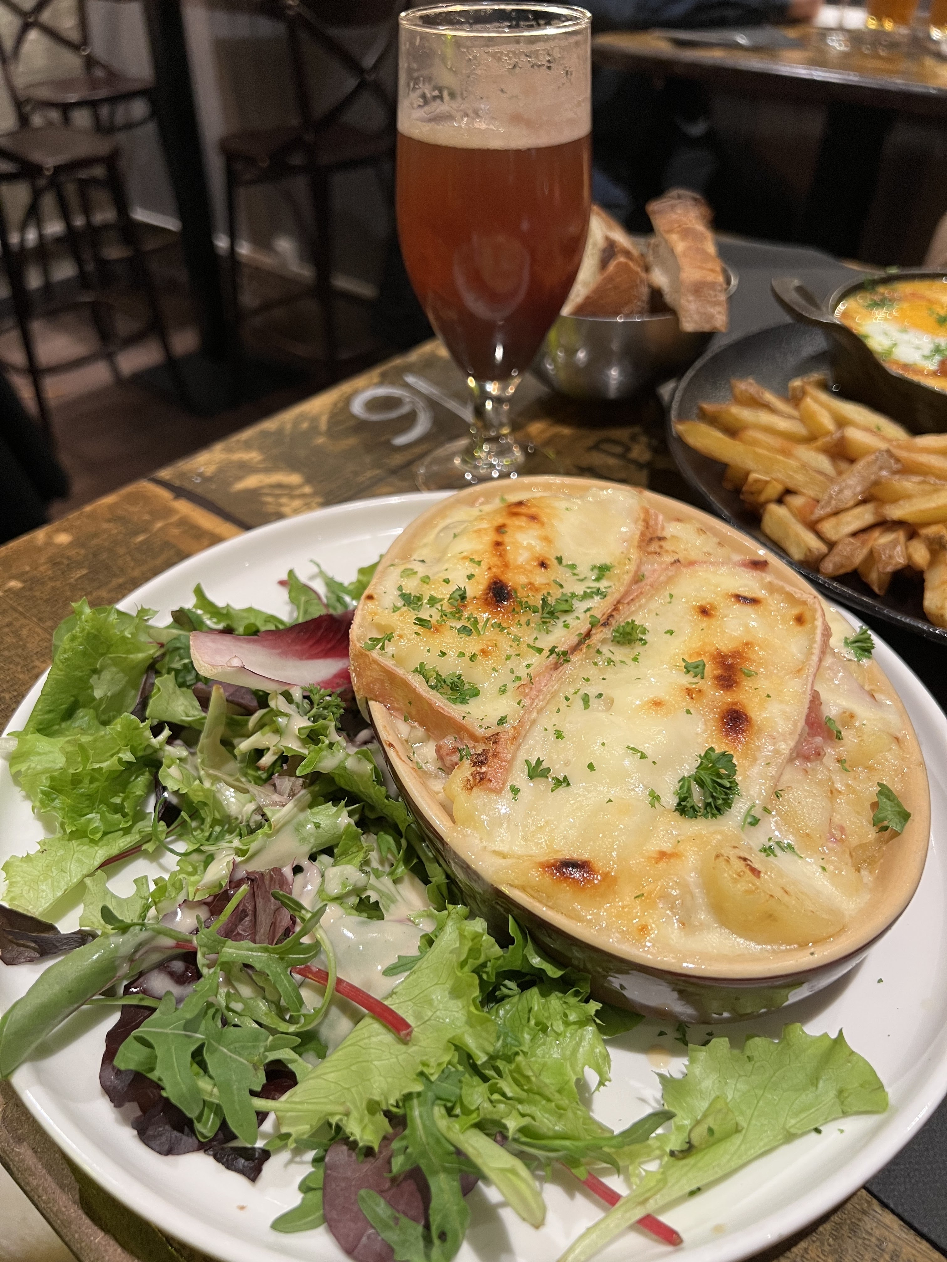 Welsh et frites excellentes, mais équipe désorganisée, on a attendu 40nmijutes avant qu'on vienne prendre notre commande alors qu'il n'y avait pas beaucoup de monde, avec la moitié du personnel qui sèche des verres. Sinon c'était très bon.