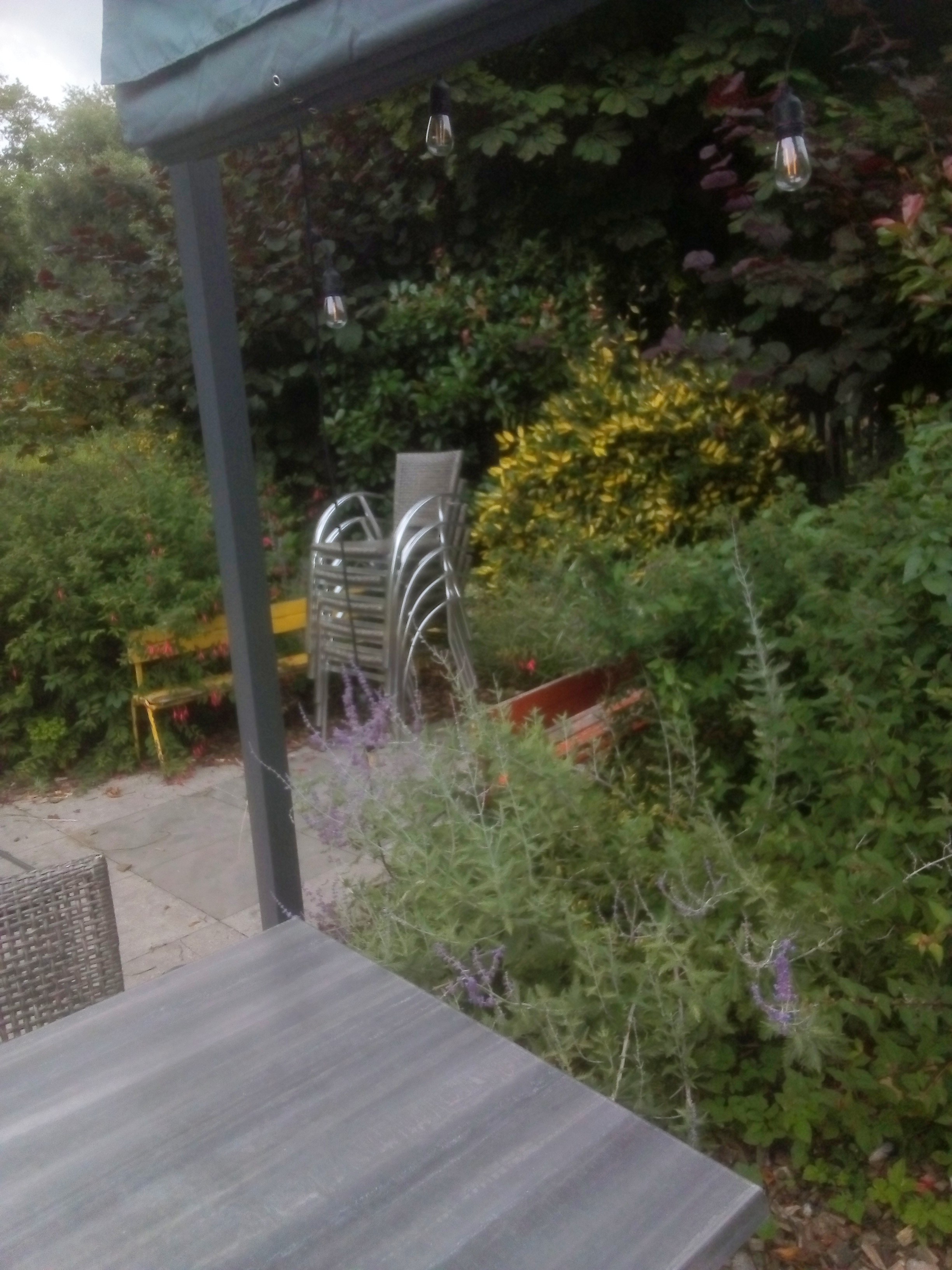 Les + : déco intérieure soignée, carte des plats typique de la région avec des produits locaux, choix des bières super sympa. Les - : terrasse complétement délaissée, les bacs à fleurs sont remplies de mauvaises herbes, elle n'est absolument pas entretenue et est couverte de feuilles mortes, aucune mise en valeur. DOMMAGE !!! Elle devrait être un véritable atout pour votre établissement car elle a un gros potentiel. Les tonnelles sont remplies de toiles d'araignées et de pollen : résultat : Hallowen en plein mois de juin !! Gros boulot de remise en question, je pense. Une fois de plus dommage car dimanche + soleil = terrasse remplie et là c'était loin d'être le cas .