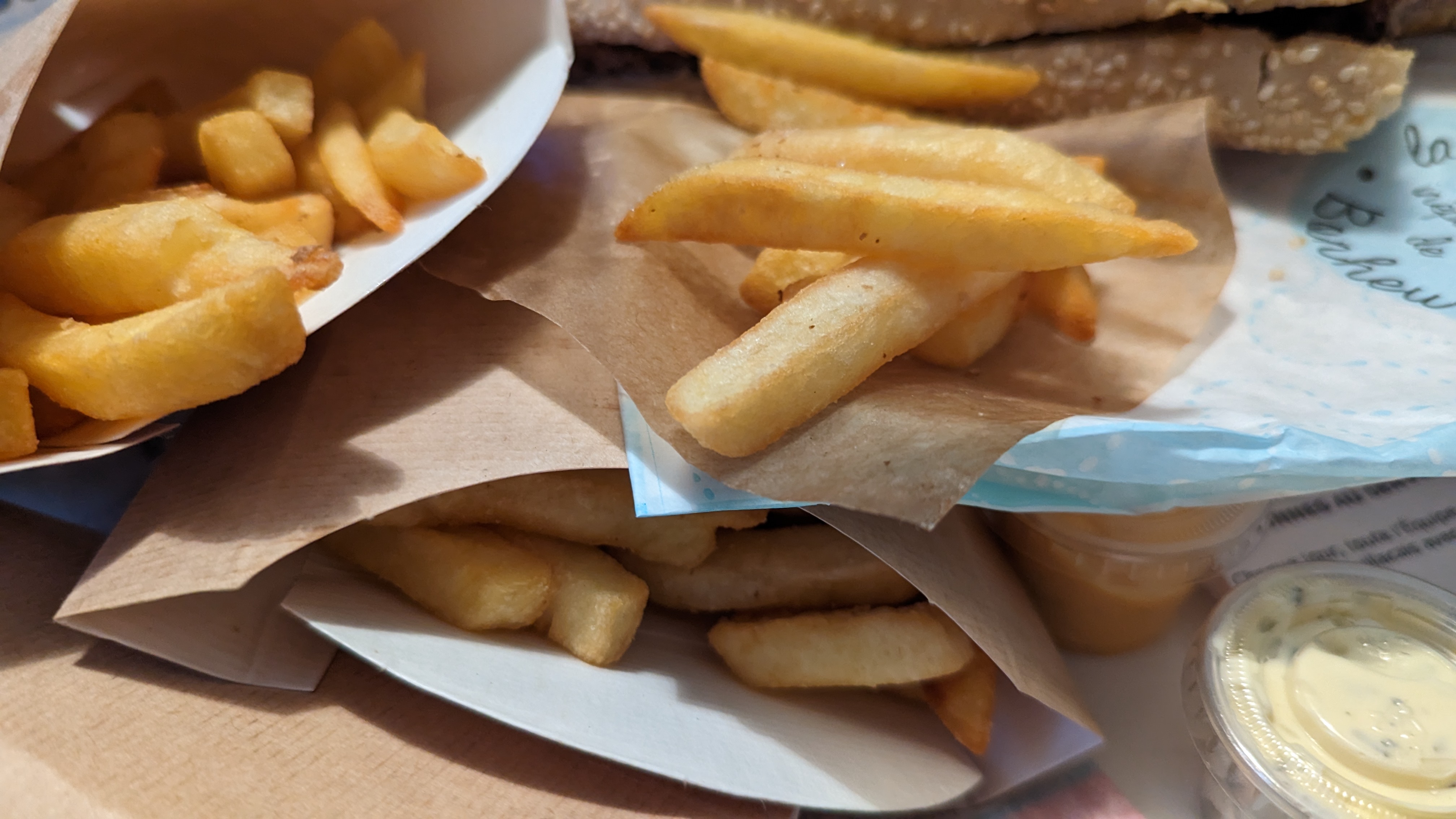 Beaucoup, beaucoup d'attente, mais vraiment ça vaut le coup !!! 🤩 Des kébabs super bons et copieux avec du vrai pain au sésame !!! C'est une tuerie !!!! 😁 Le lieu est propre, le père et le fils sont super sympas, et en plus, parlent parfaitement français avec les clients. C'est vraiment très agréable !!! 😃 Bien que les frites ne soient pas maisons, ça devient mon nouveau kébab préféré dans le coin 😉😇