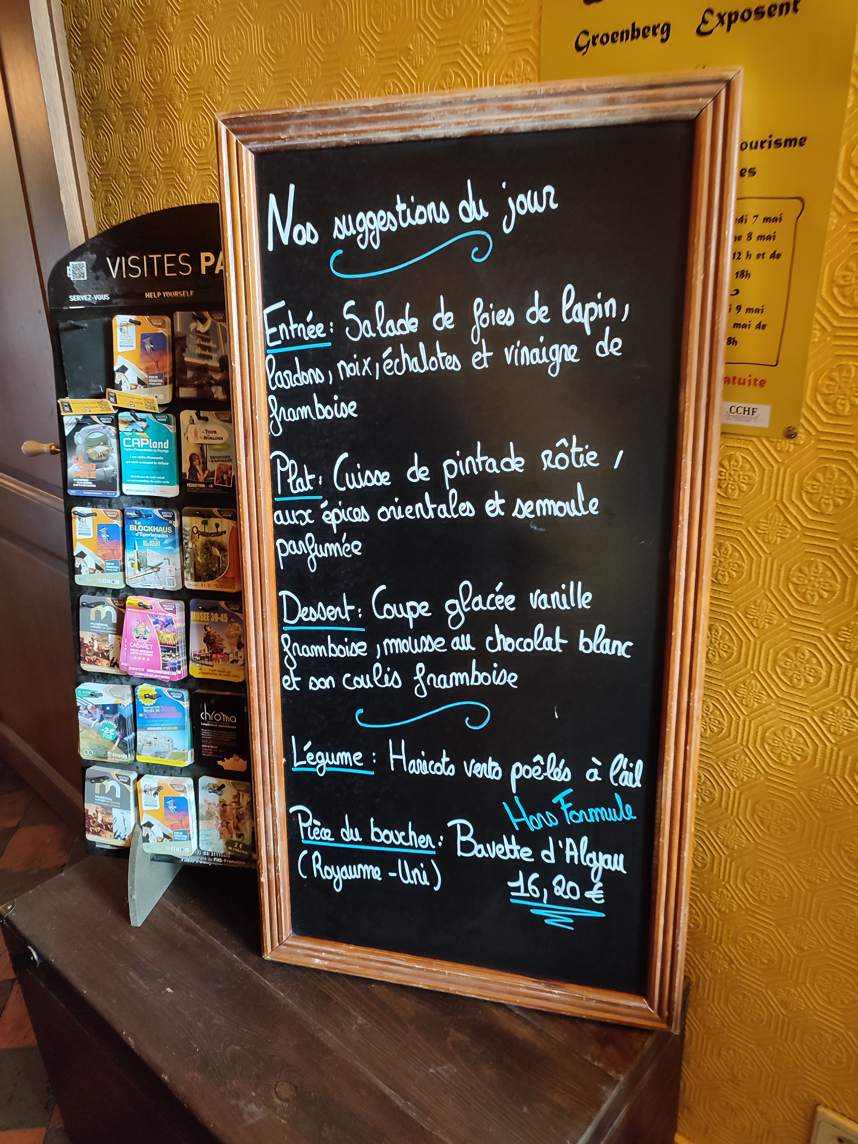 Premier repas ce midi. Quantités très généreuses de l'entrée au dessert même dans la formule. Beaucoup de fait maison..Jeune serveuse vraiment attentionnée, tellement rare et agréable. Nous reviendrons exprès dans le coin je pense.