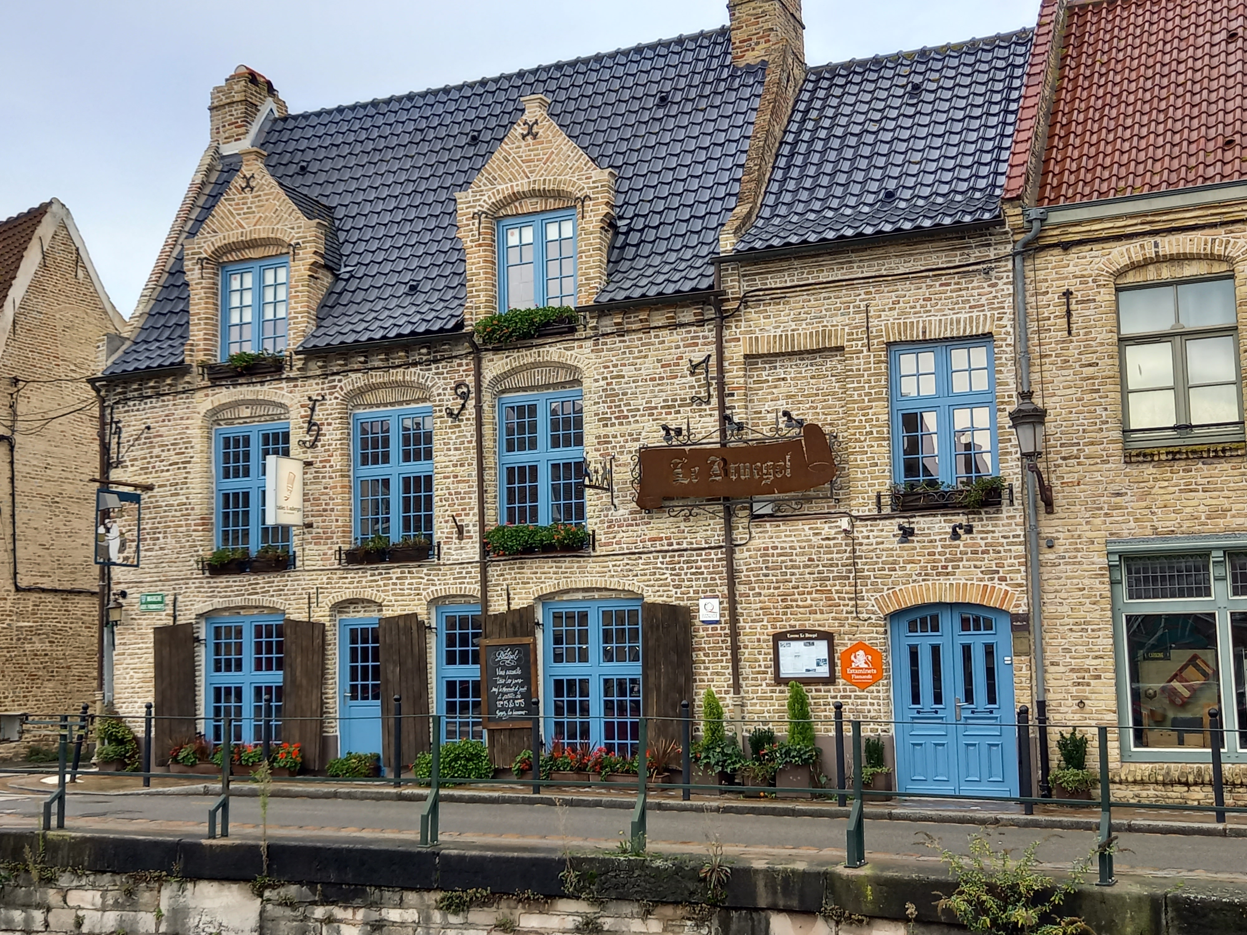 Une ancienne bâtisse très jolie, qui est maintenant un restaurant Estaminet avec plusieurs salles. Un bon rapport qualité prix et de bons produits dans l'assiette. J'ai goûté et apprécié la tartine Bergueoise et ses frites maison. Plat bien copieux et simple. Il y a à Bergues un fromage bien odorant et très goûteux. Bien évidemment accompagner par une bonne bière.