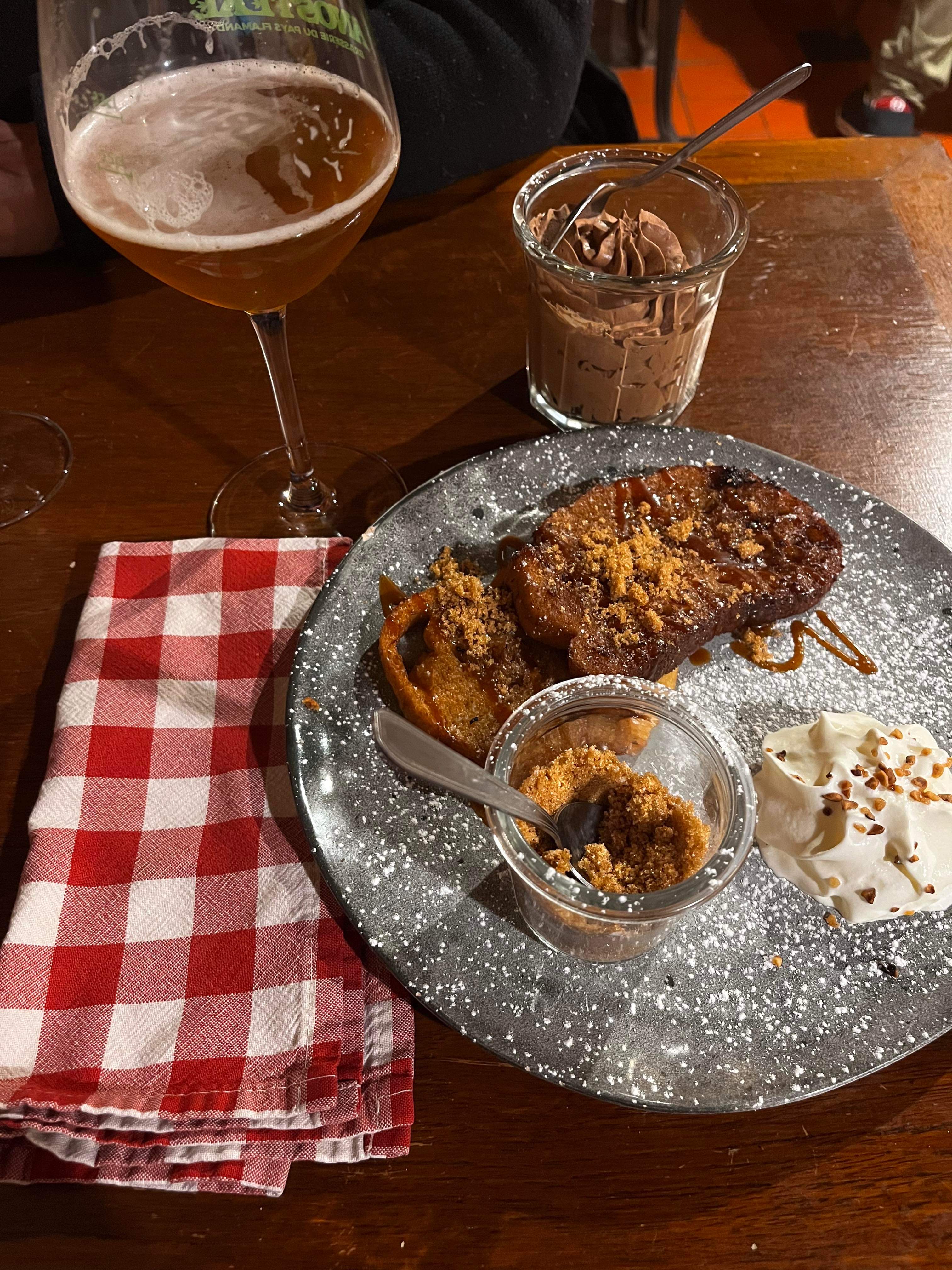 Dîner dans un cadre très typique flammand ! Avec des plats traditionnels délicieux. Les croquettes au Maroilles et le welsch complet un délice