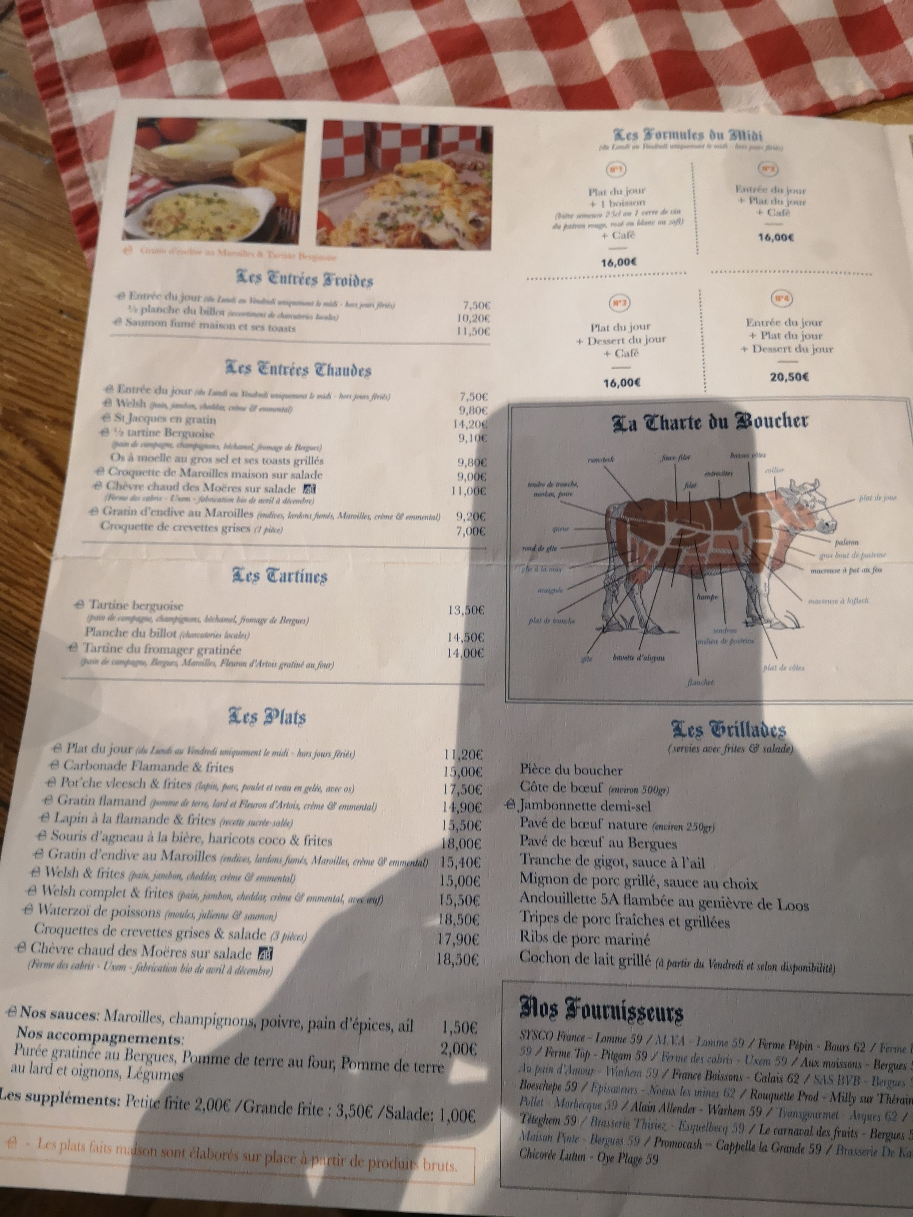 Excellent restaurant ! Typique du nord avec de nombreuses spécialités. Une ambiance chaleureuse et des plats de qualité! Nous recommandons à 100 %