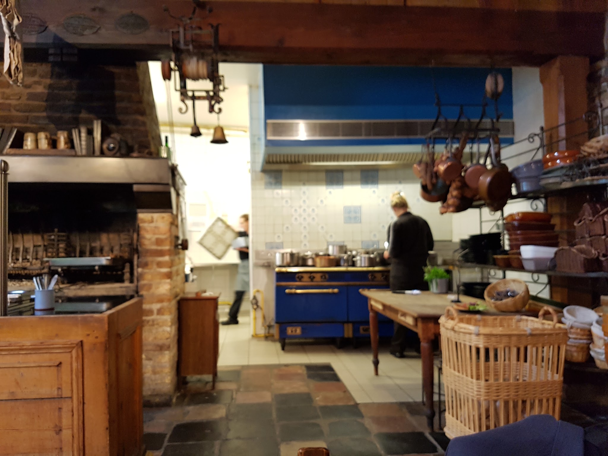 Cadre chaleureux, cuistos qui travaillent sous nos yeux, bâtiment historique dans son style d'époque, bonne cuisine assez copieuse, service très rapide je recommande