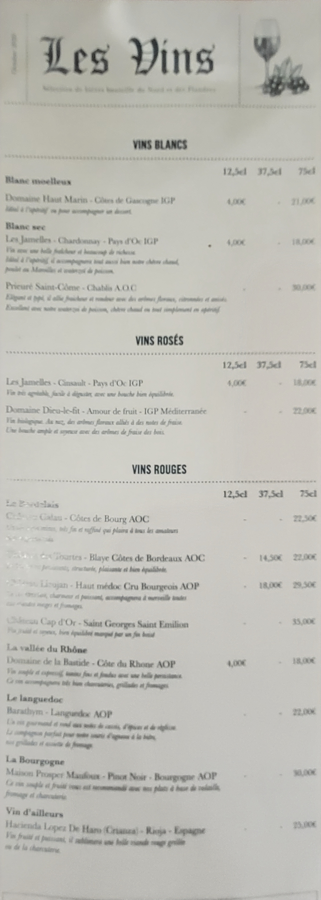 Très bon estaminet nous avons bien mangés le cadre est sympathique et le personnel très agréable nous avons passés un très bon moment en famille à un prix correct