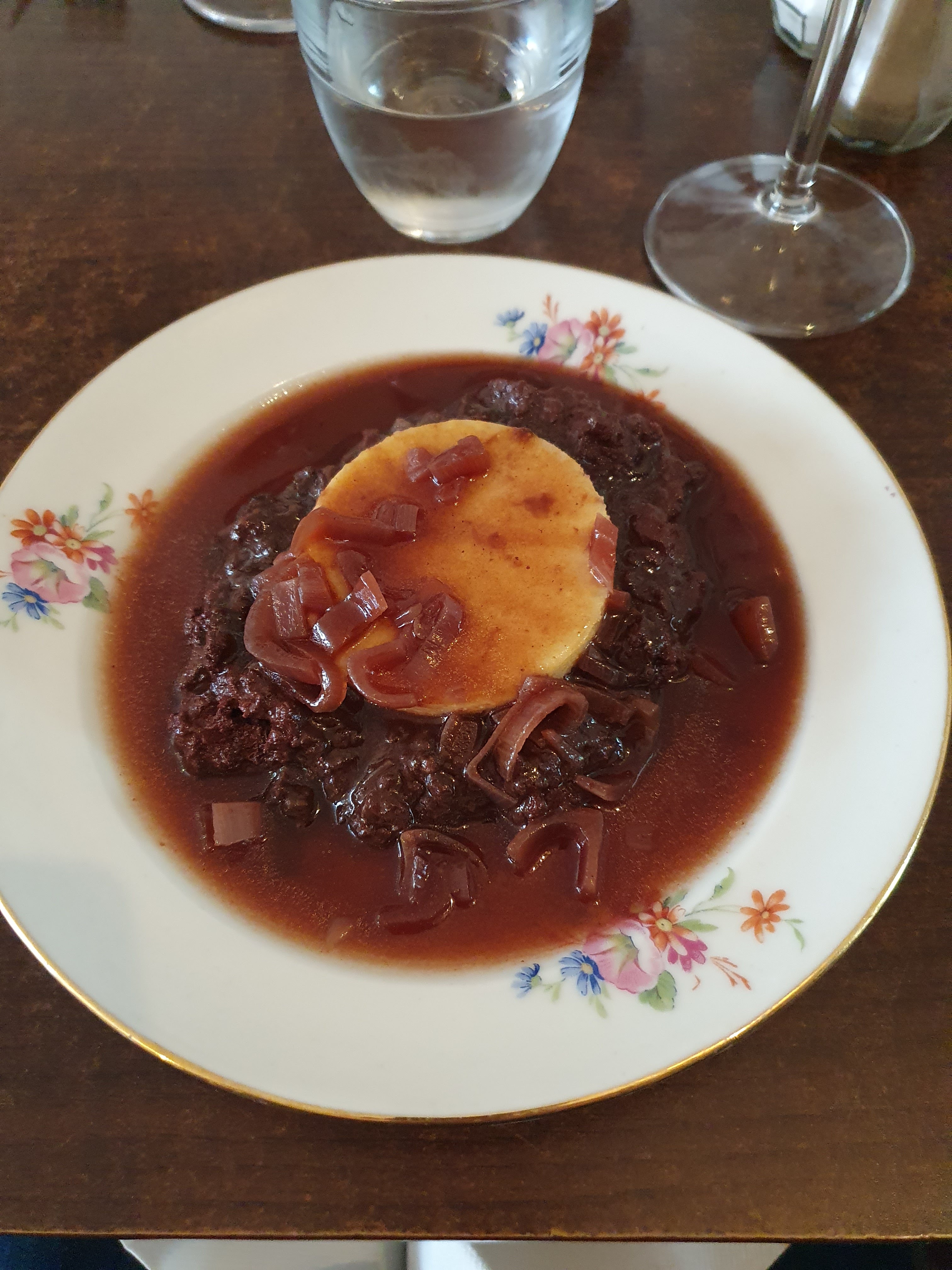 Joli cadre pour manger de la très bonne cuisine (dans de jolies assiettes fleuries en plus). Le velouté de champignon était vraiment top !