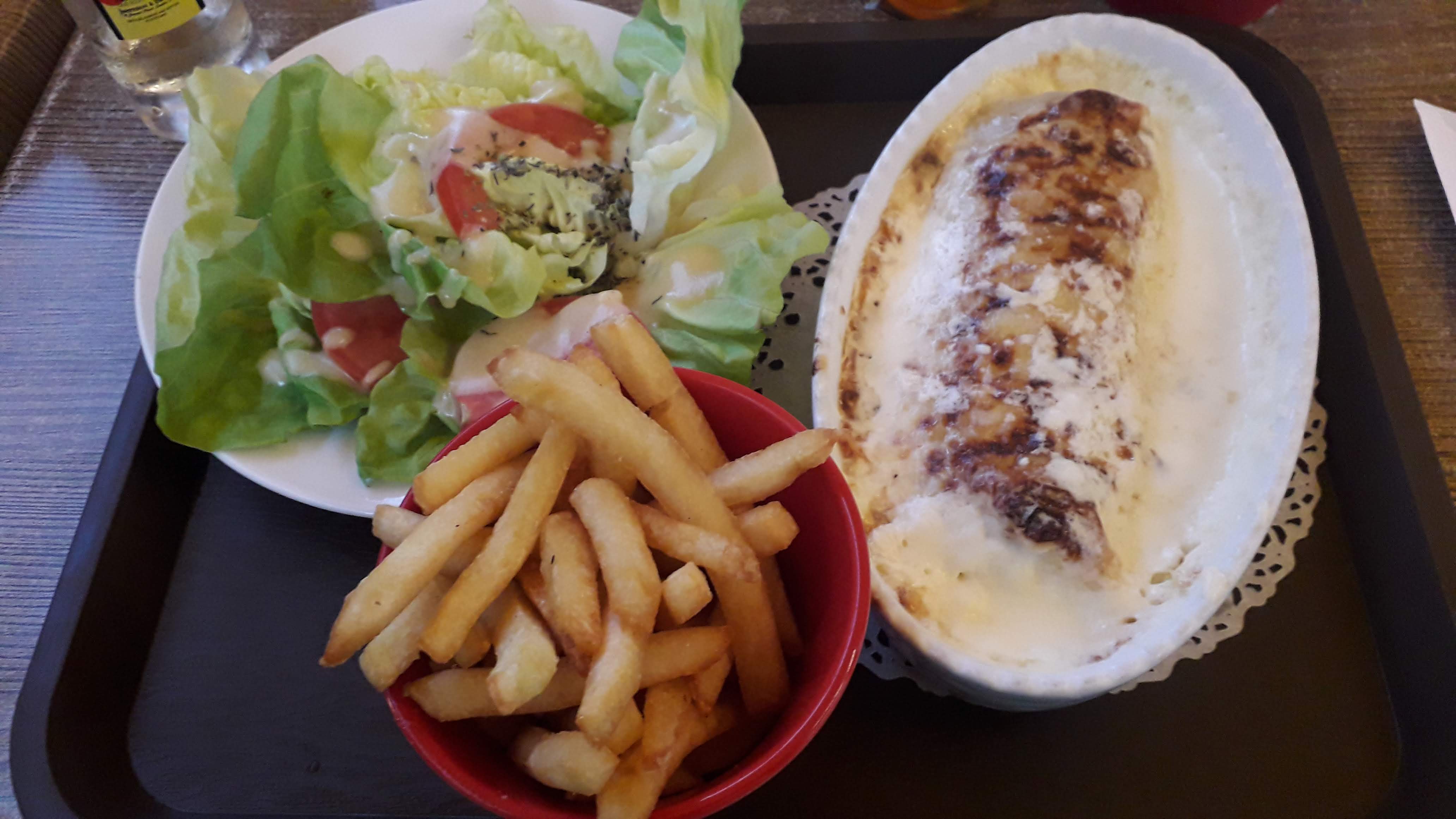 J ai goûté à leur spécialité gratin de Saint Jacques, moules, crevettes, un délice ! Servi avec une petite salade et frites ! Je me suis régalée. Merci !