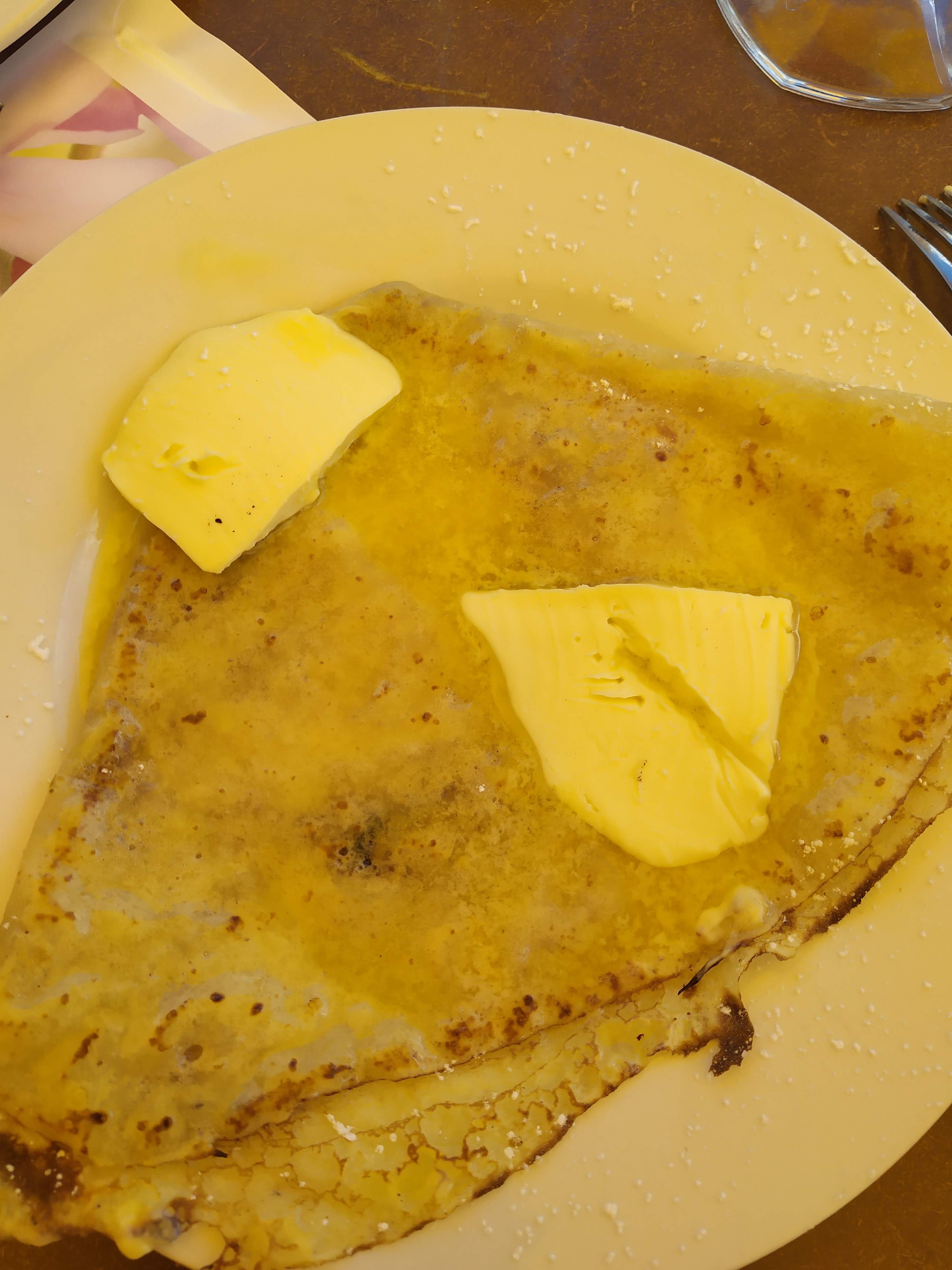 Crêpe trop cuite, dure à mâcher. Le sourire de la serveuse doit être en supplément...c'est un minimum lorsque l'on accueille les clients ou qu'on leur amène la note.