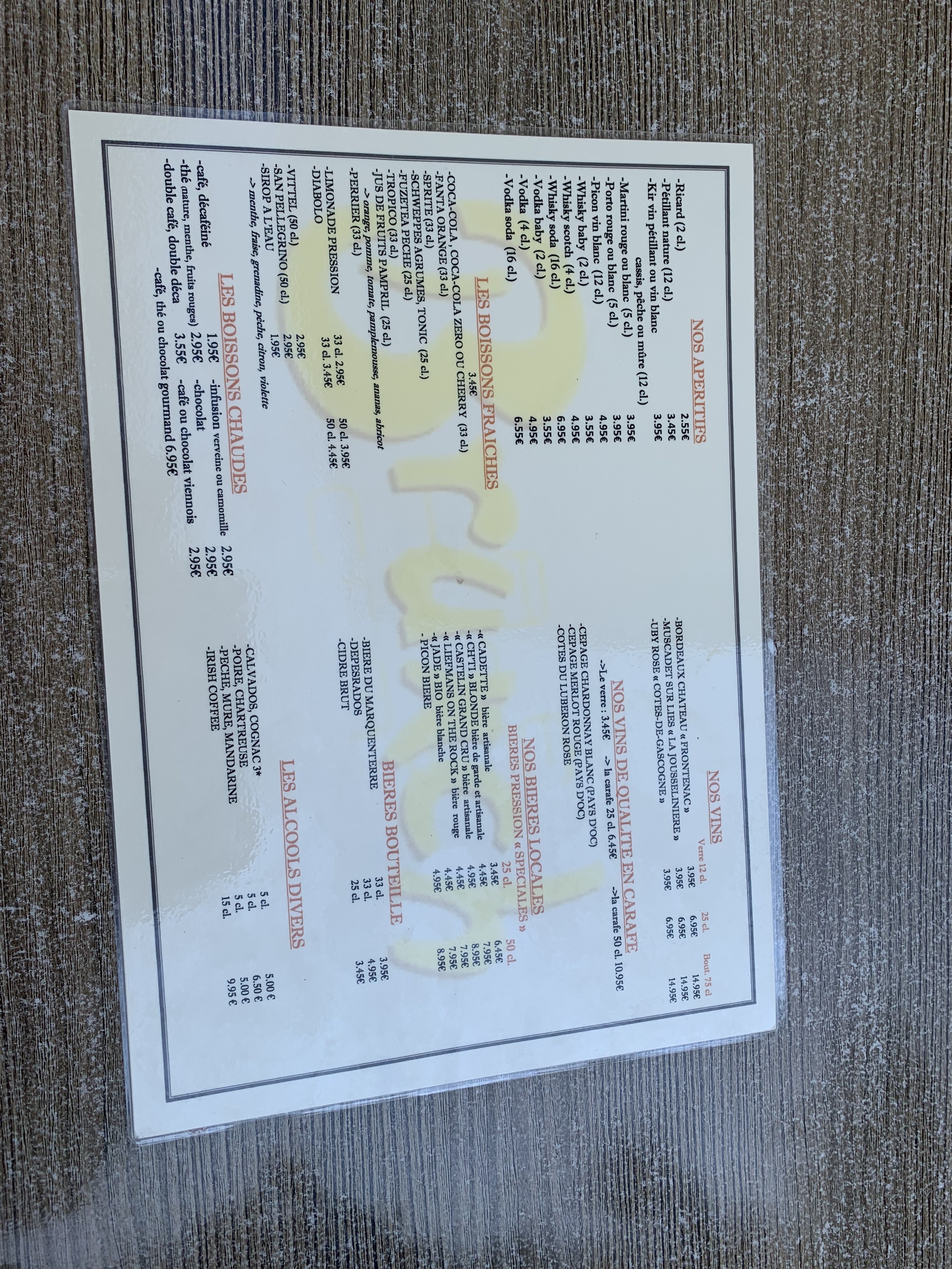 Énorme surprise je ne m'attendais pas du tout à cela' Accueil parfait après trois échecs pour boire un verre chez des concurrents. Et de ce fait nous avons goûté à leur cuisine et les moules au maroille une vraie tuerie. Et prix pas excessif. A recommander.
