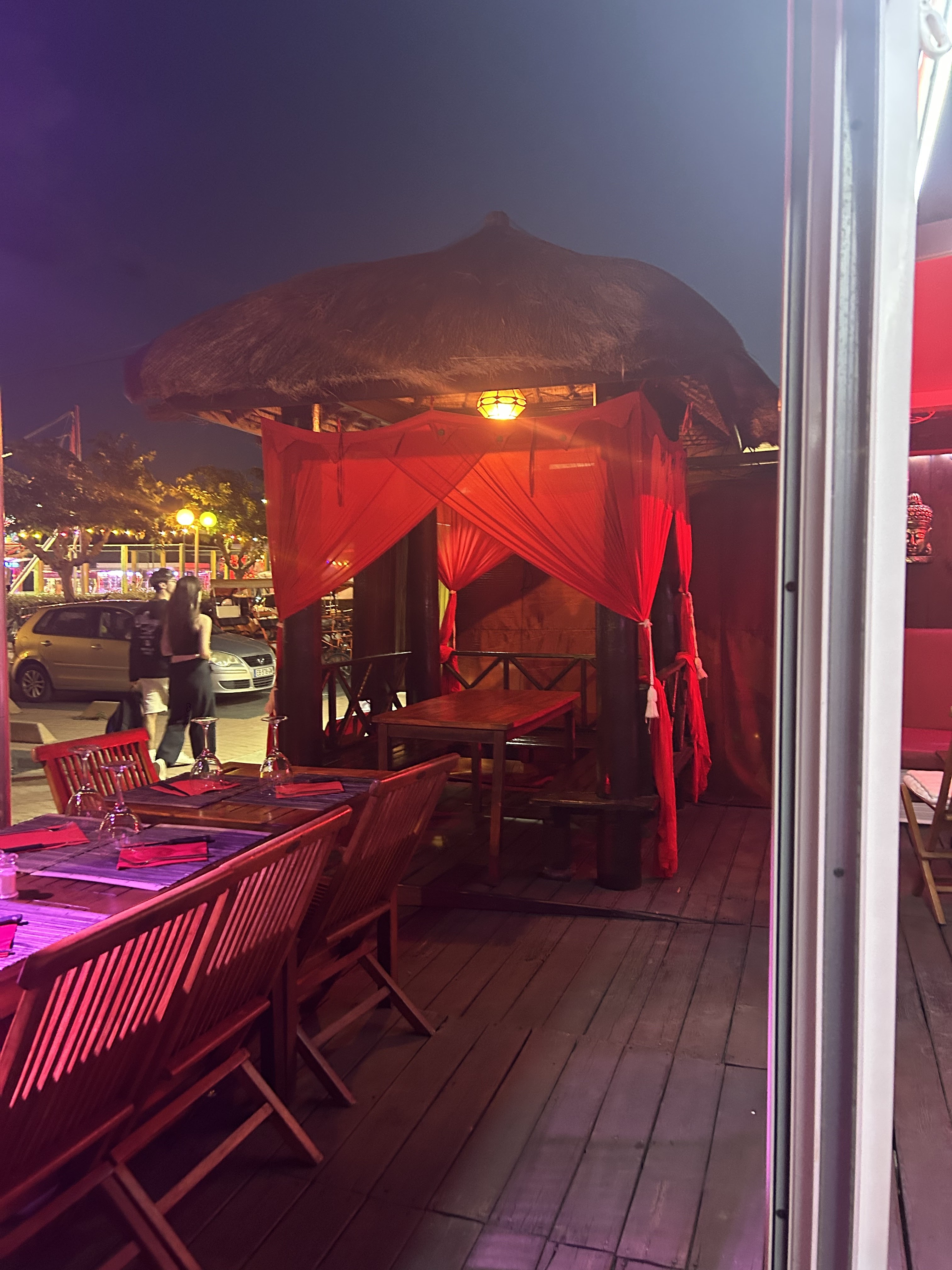 Prix élevé et manque d empathie. Nourriture pas top. Surfait. Les pagodes extérieures ne peuvent contenir 6 personnes donc deux sont à l exterieur ce qui rompt le charme. Déçue