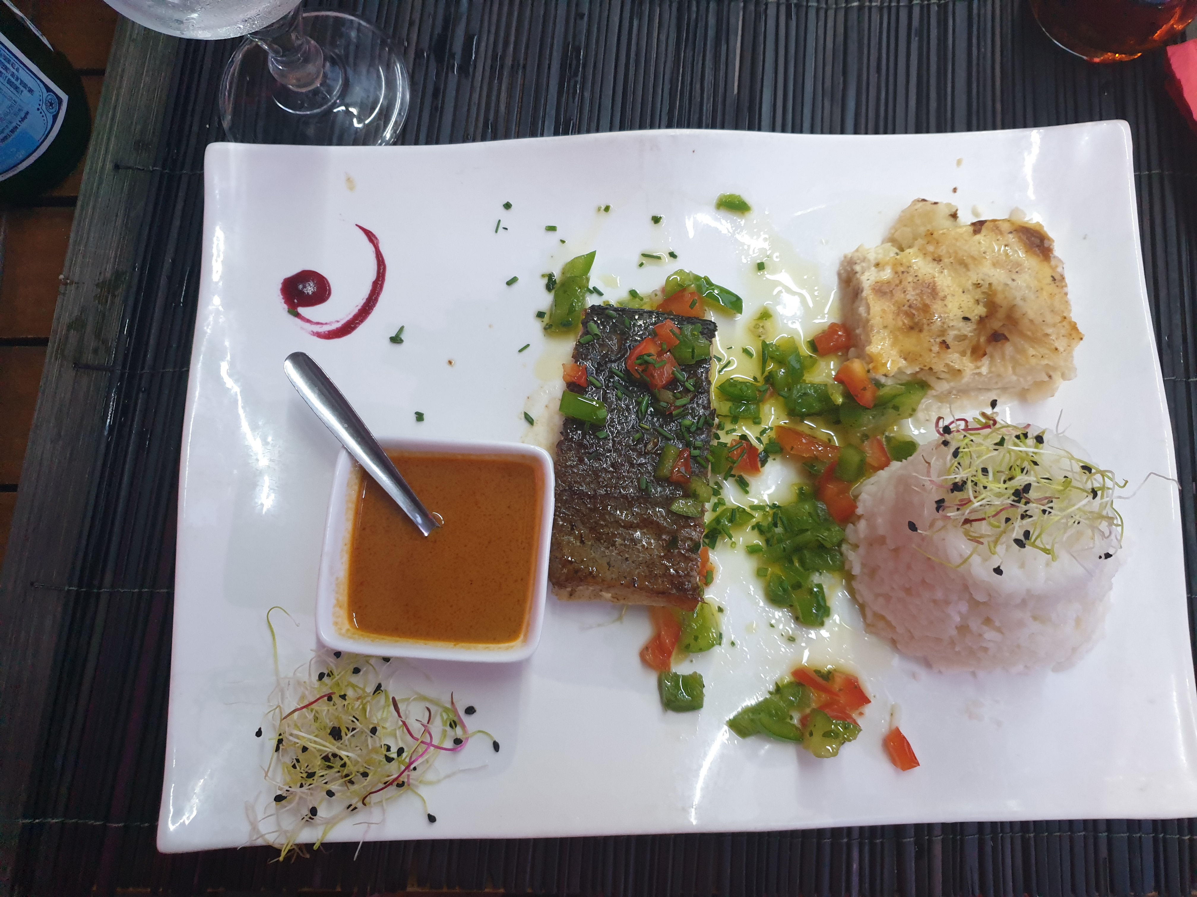 Pas mauvais mais pas exceptionnel non plus. Beaucoup trop diversifié sur les plats. Pour un restaurant au thème un peu asiatique avec des plats thaïlandais ou chinois, on y trouve aussi des pizzas, des salades, pâtes.