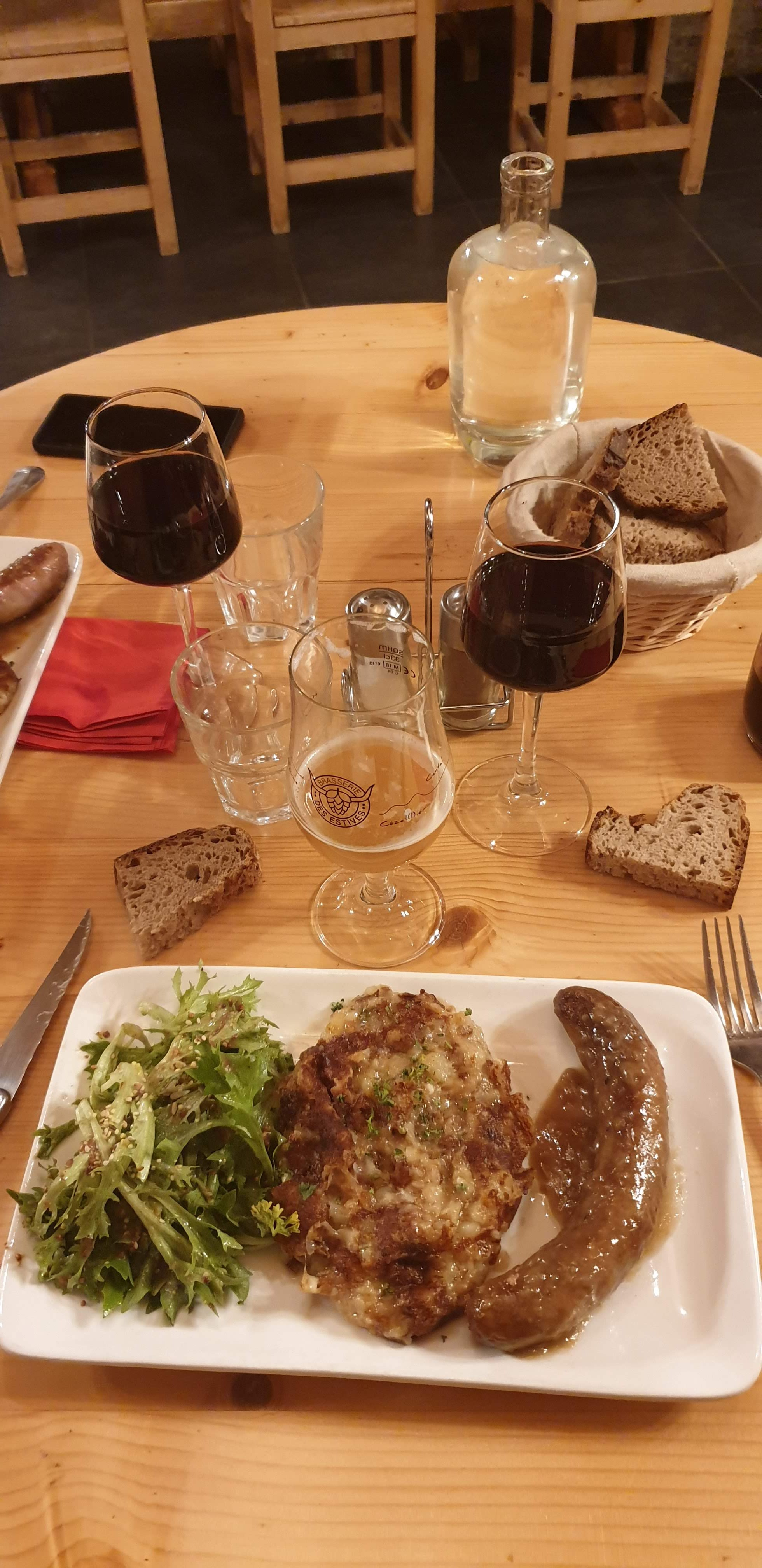 Réservation faite pour 10 mais à notre arrivée table de huit donc on se serre pour rajouter 2 places en bout, ça peut arriver. La carte très réduite qui peut être un gage de qualité mais charcuterie très réduite et de qualité moyenne pour les raclettes et les fondues, andouillette et son accompagnement pas trop mal, spécialité du moment moyen. Dommage car le cadre se prête à un bon moment mais très déçu de notre soirée. Je mets 2 étoiles pour pas mettre moins.