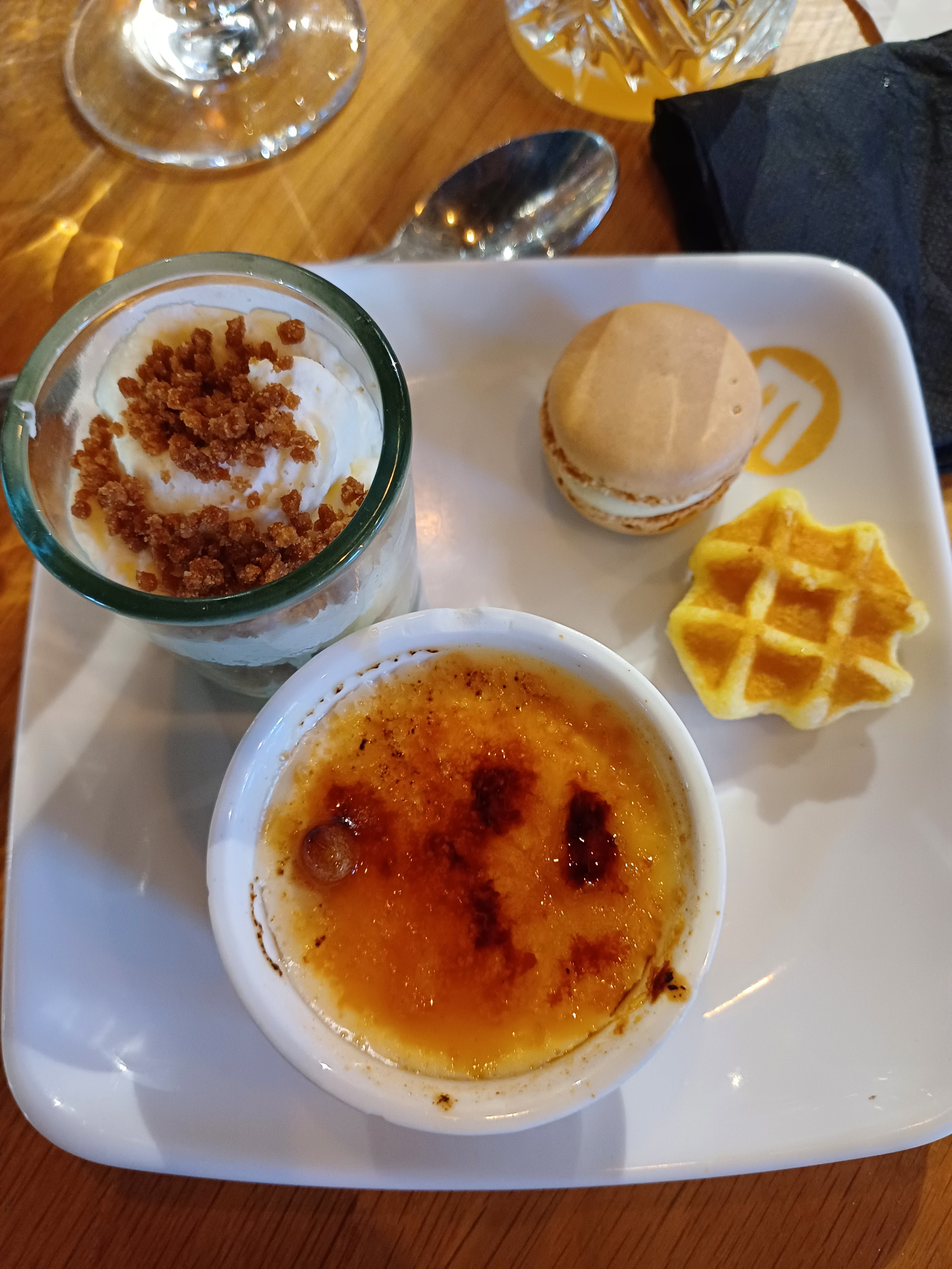 Bonne atmosphère calme et chic, malgres que tout les buffets ont augmenter en € je trouve que le buffet du soir a 26.90 est un peu élever sinon tres satisfait de la qualité des entrées (charcuteries+ fruits de mer) et leur présentation Ainsi que les fromages Pas trop fan des assiettes du Mosto en plastique Un Mr au bar qui était plus préoccupé part sont téléphone que le renseignement que je lui es demandé Sinon le reste du personnel était très sympathique et accueillant.
