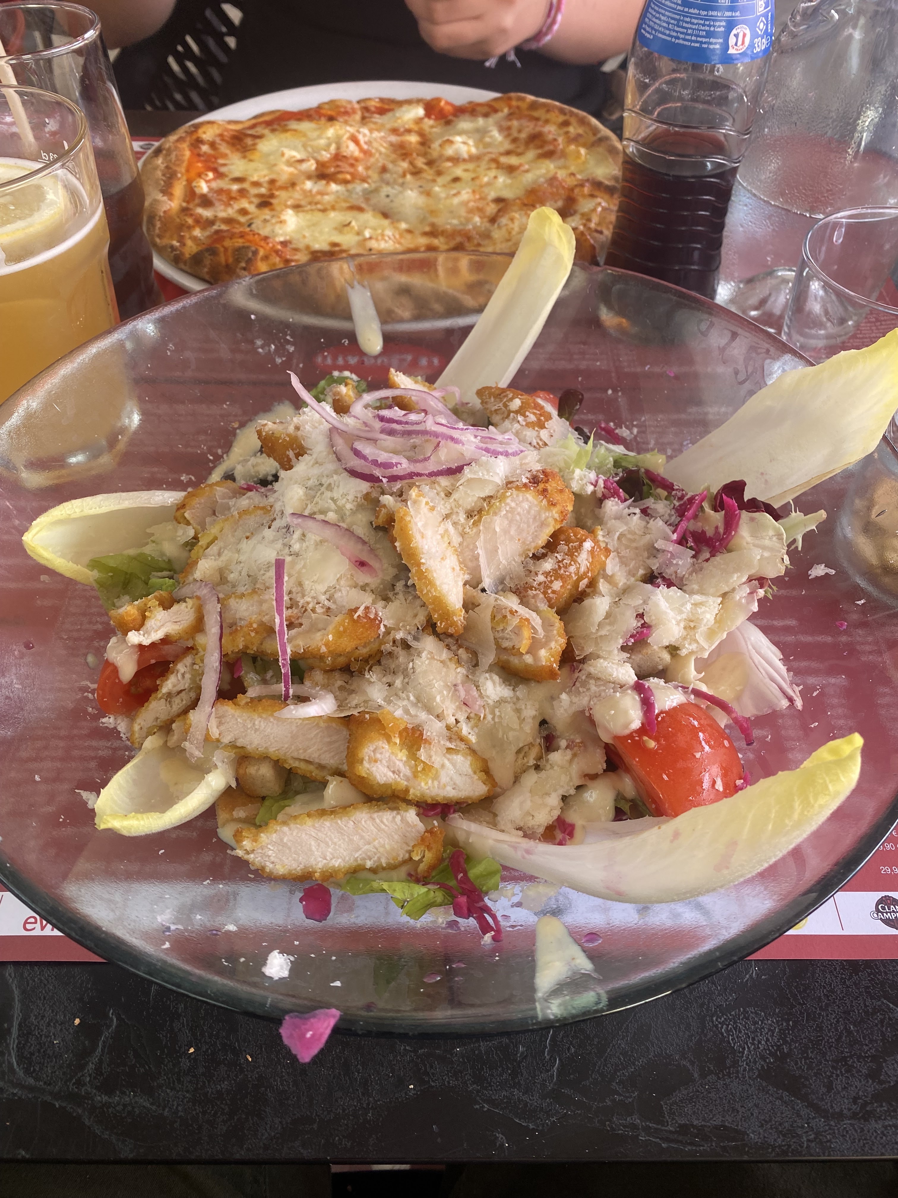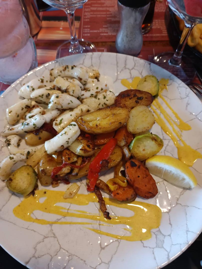restaurant très agréable. Salade juste excellente. moule frites un régal et une énorme pizza. On ressort sincèrement tout est copieux et très bon jusqu'aux desserts .