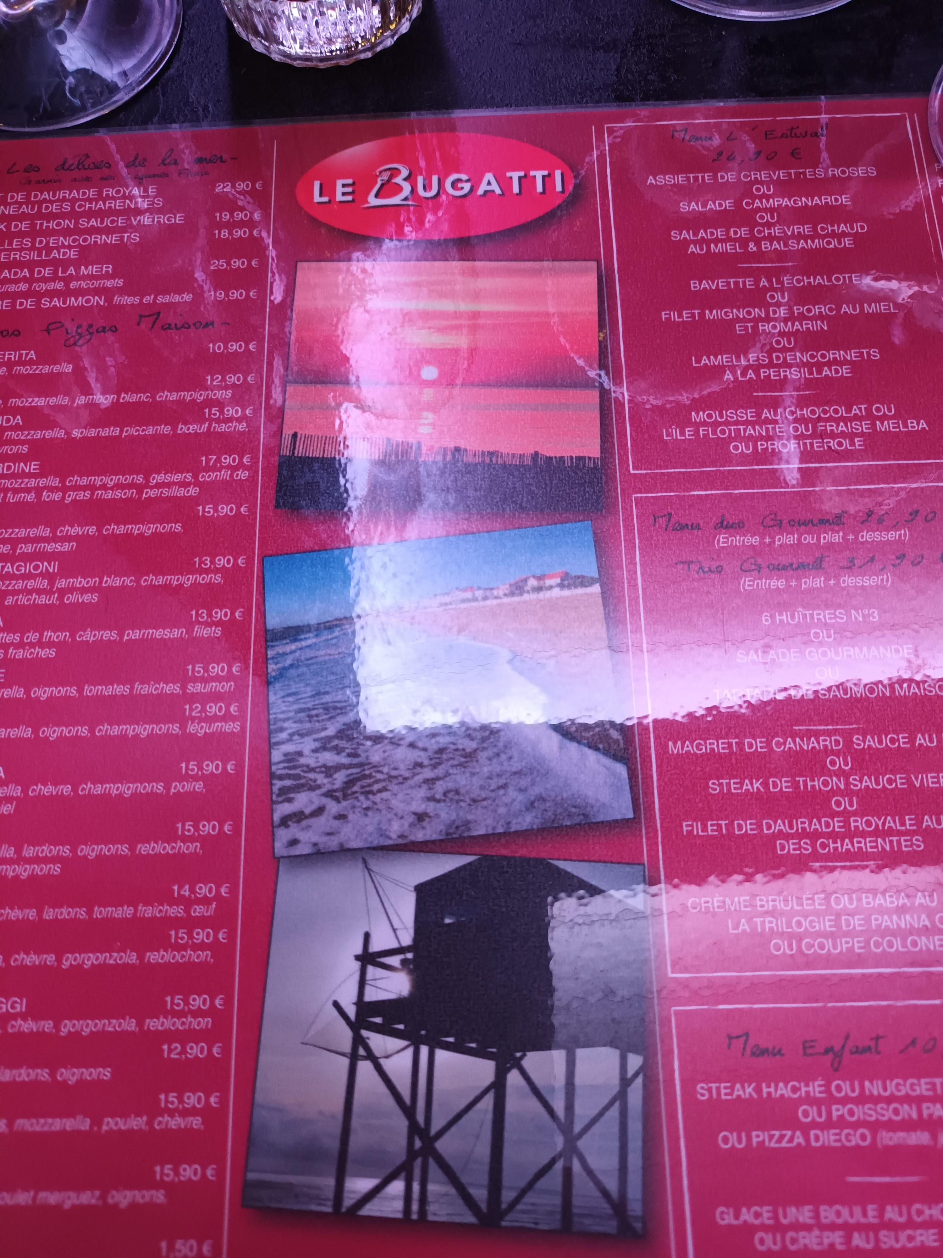 Le bugati devenu le bugat'. Notre restaurant régulier toute l année. Mais je pense que ça ne va pas le rester. Avant dès qu on arrivait le pain et la carafe d eau étaient apportés de suite. Là il a fallu les réclamer. La pizza très bien. Les moules une catastrophe. Ouvertes à l eau, juste la sauce demandée dessus. Pas un petit morceaux d ail ou d oignons, absence de vin blanc etc etc. Je ne suis pas grande cuisinière mais je quand même...... Ne prenez surtout pas les moules. De plus même pas 500 gr. Très bon profit pour le patron . Affaire à suivre sur les autres plats.